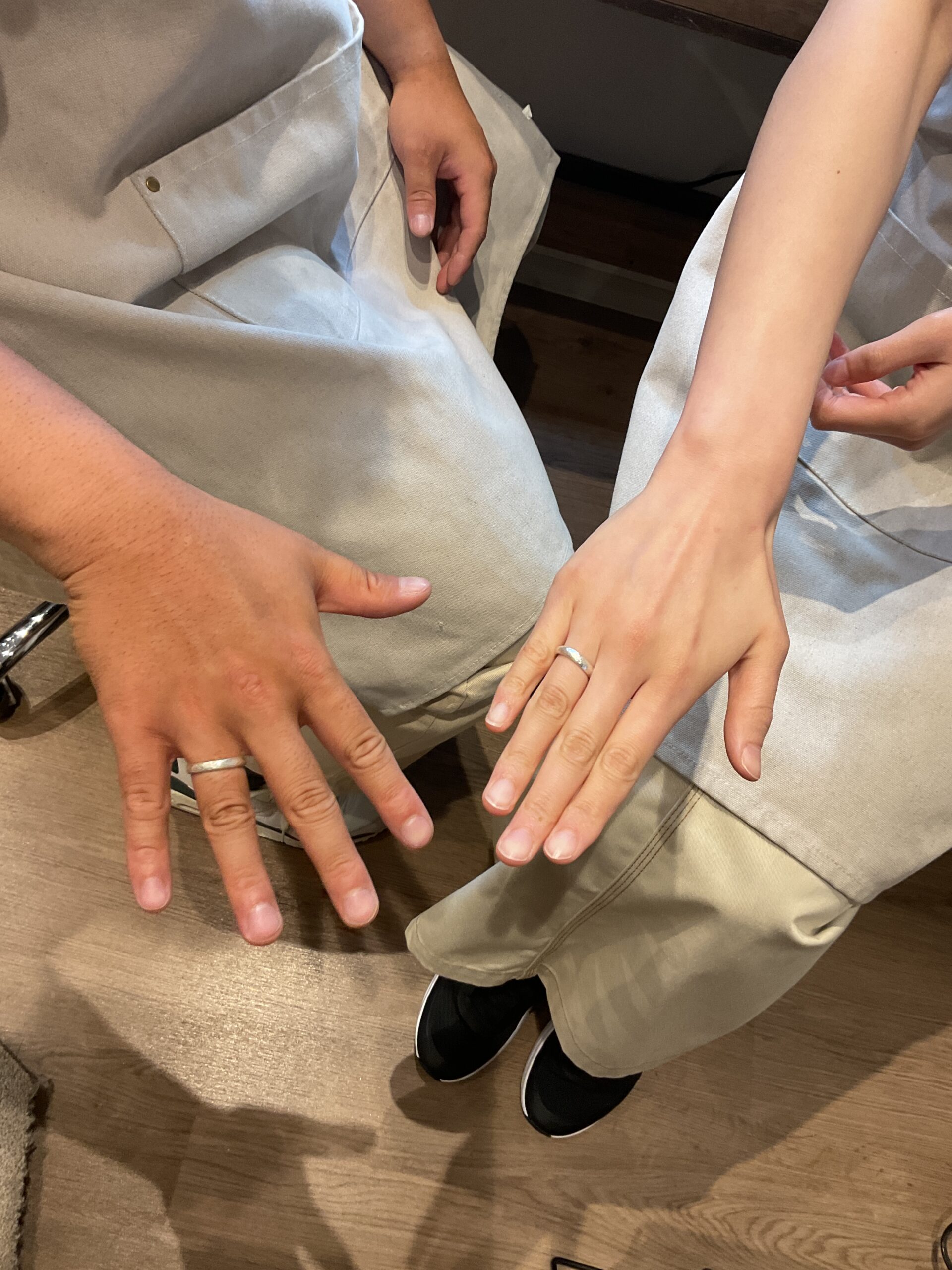 ハンマー模様をつけていただいたリングをマットに仕上げ、おふたりの味を感じられる模様のリングが完成しましたね。