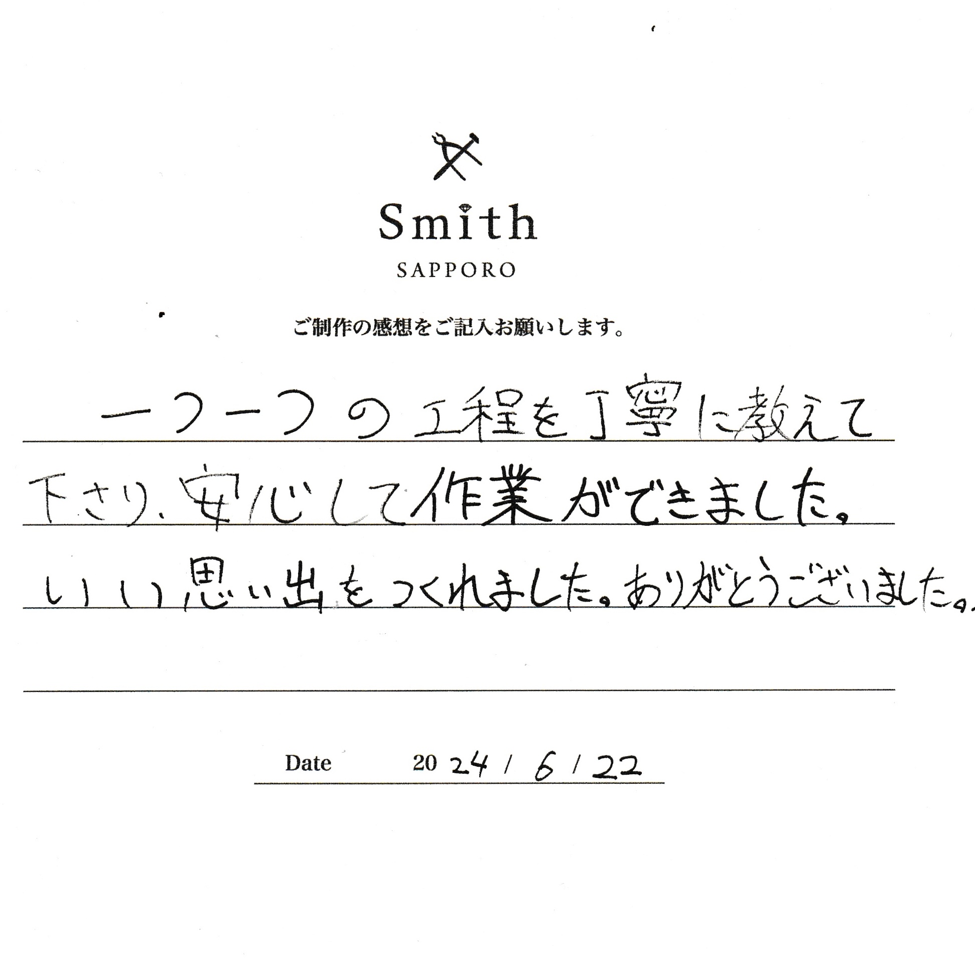 一つ一つの工程を丁寧に教えて下さり、安心して作業ができました。