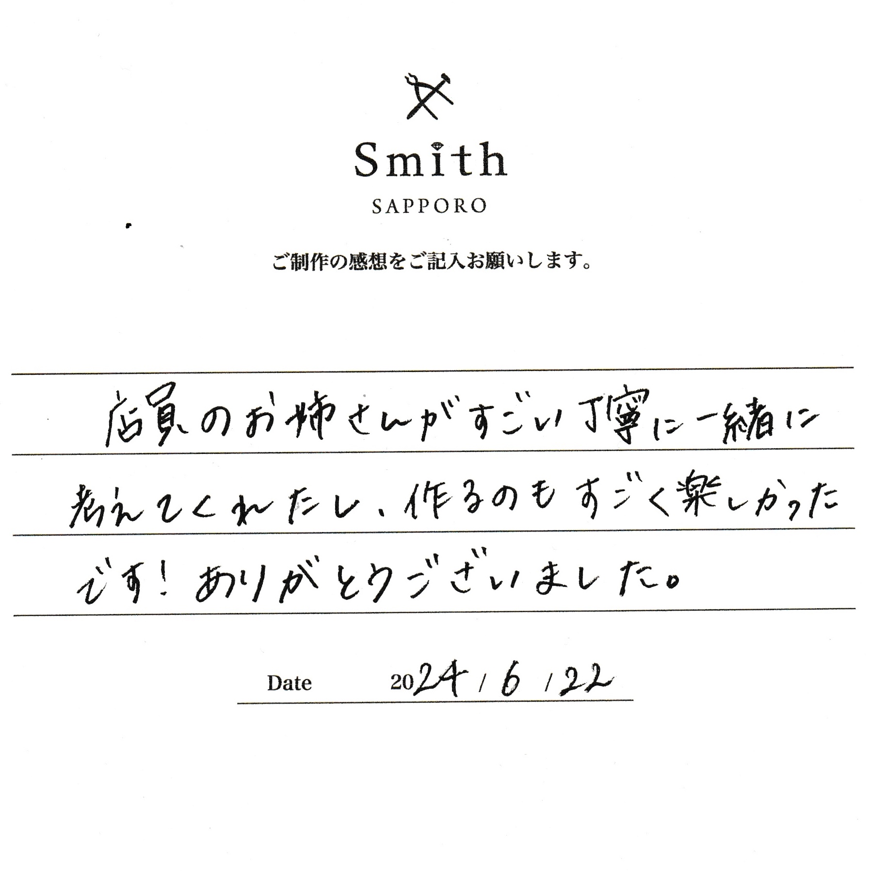 この度は、工房Smith京王プラザホテル札幌店で手作りペアリングのご制作誠にありがとうございました。