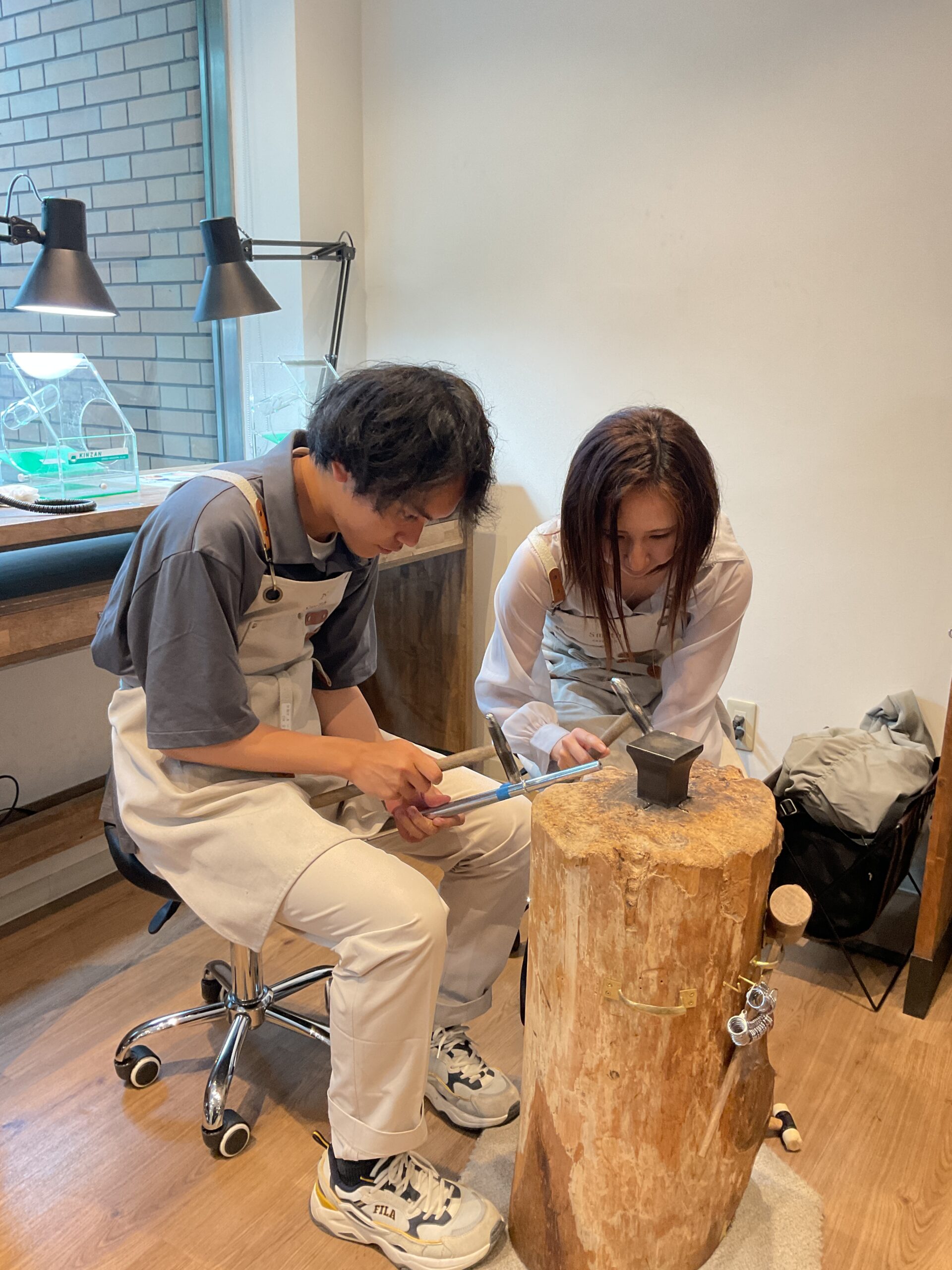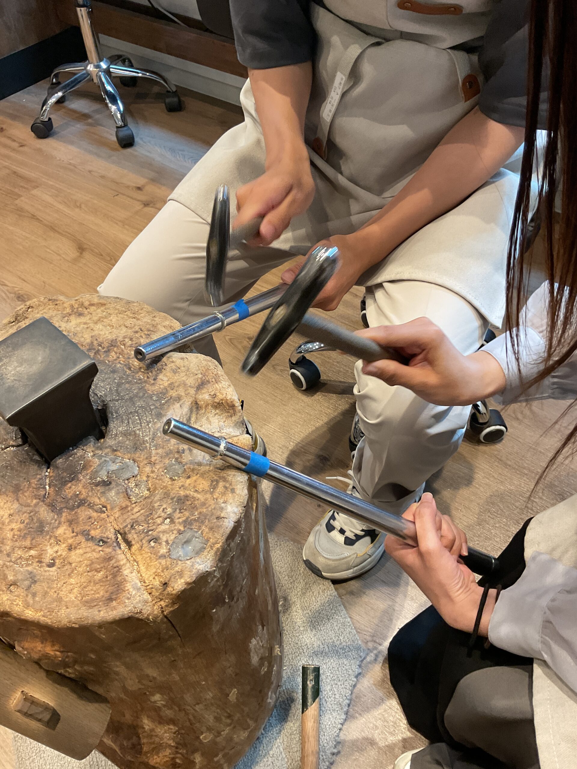 ご自身の手で叩いて模様をつけていただいたハンマー模様のリングは、細かく光を反射する素敵なリングに仕上がりましたね。