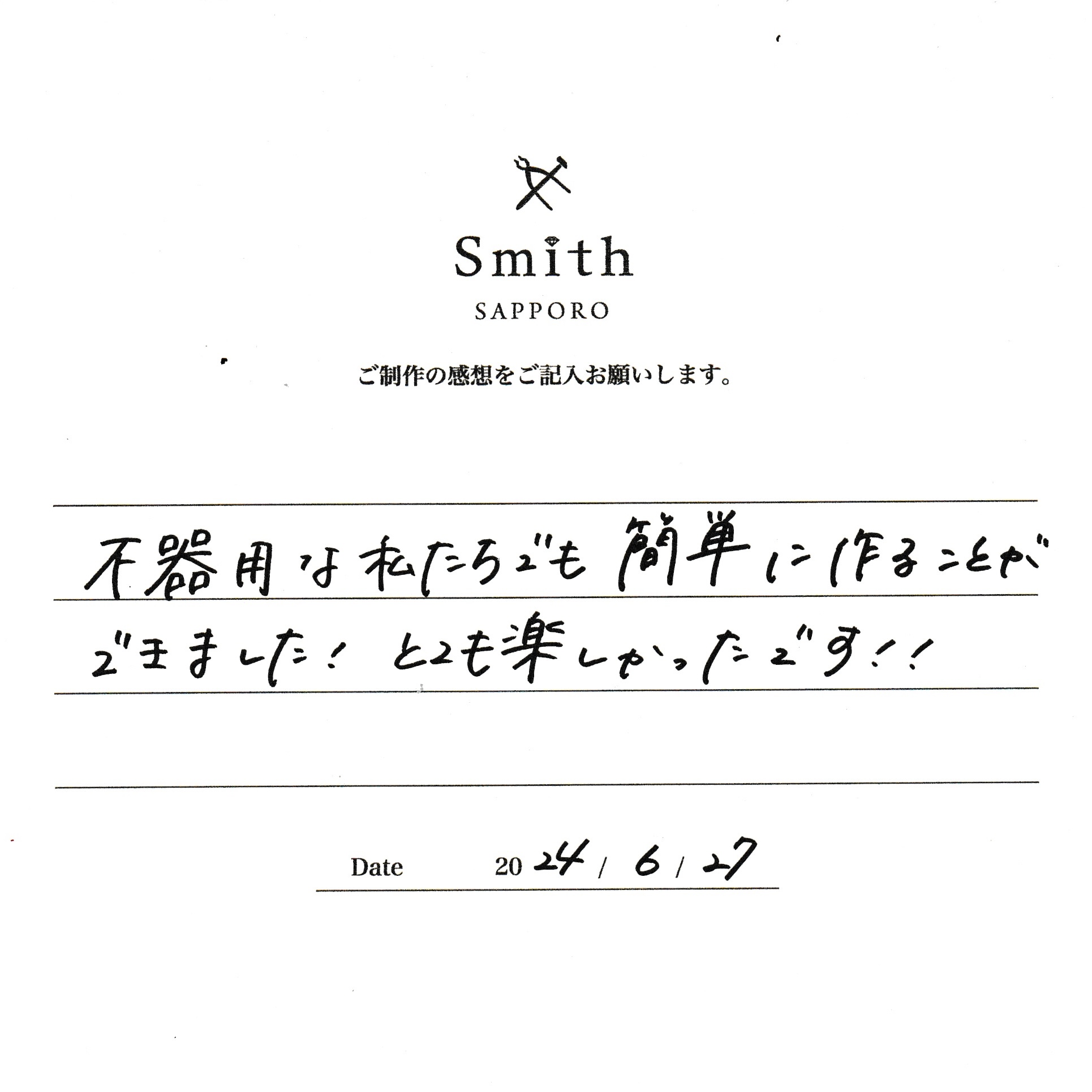 この度は、工房Smith京王プラザホテル札幌店で手作りペアリングのご制作誠にありがとうございました。