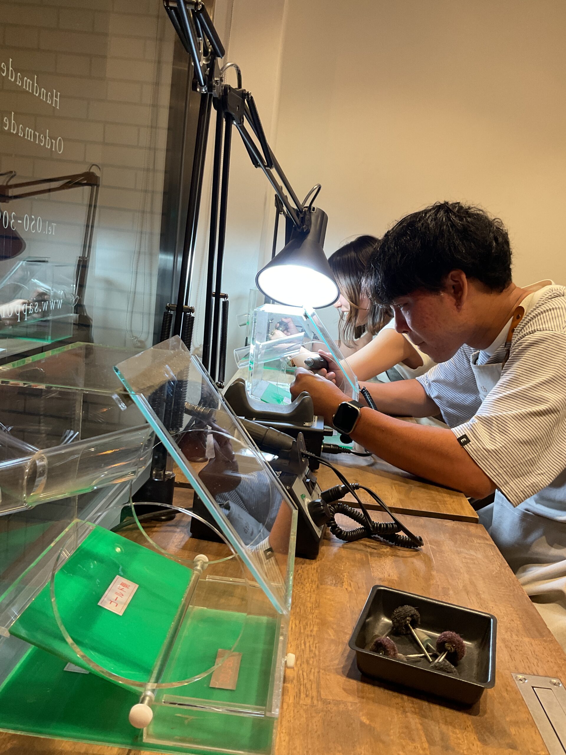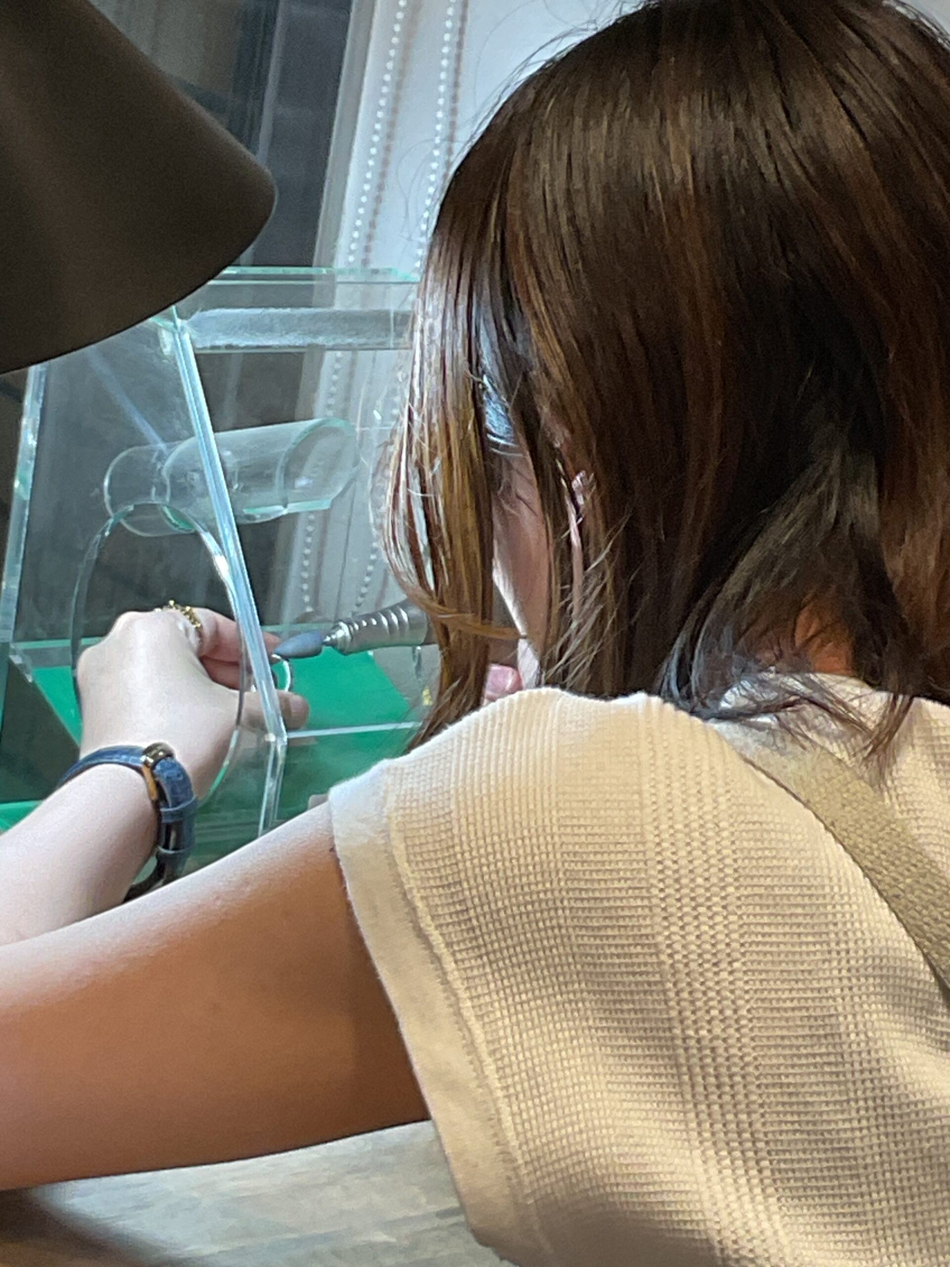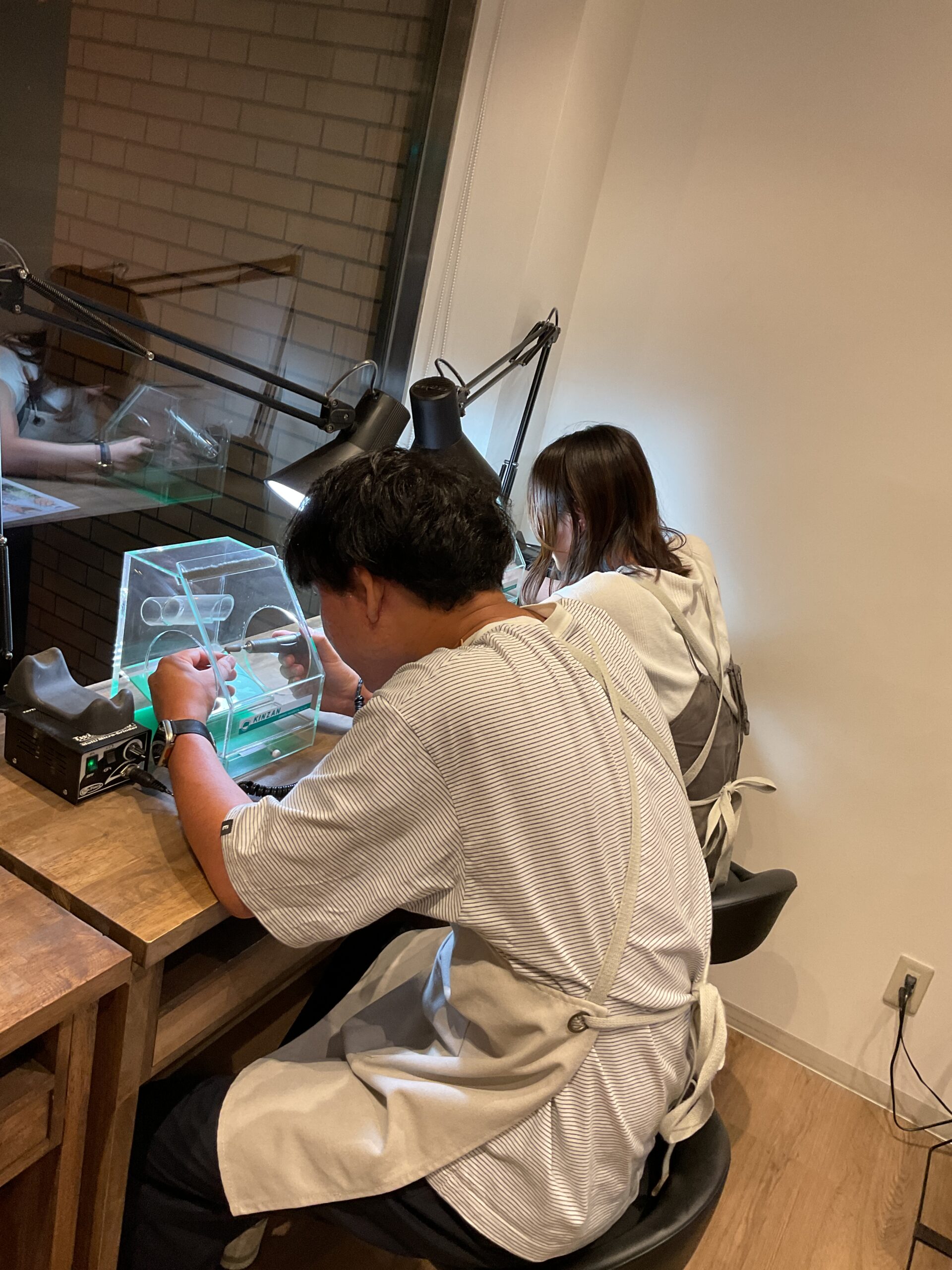 お二人が真剣に制作されたリングの内側には、お二人のお名前の刻印が施されました。