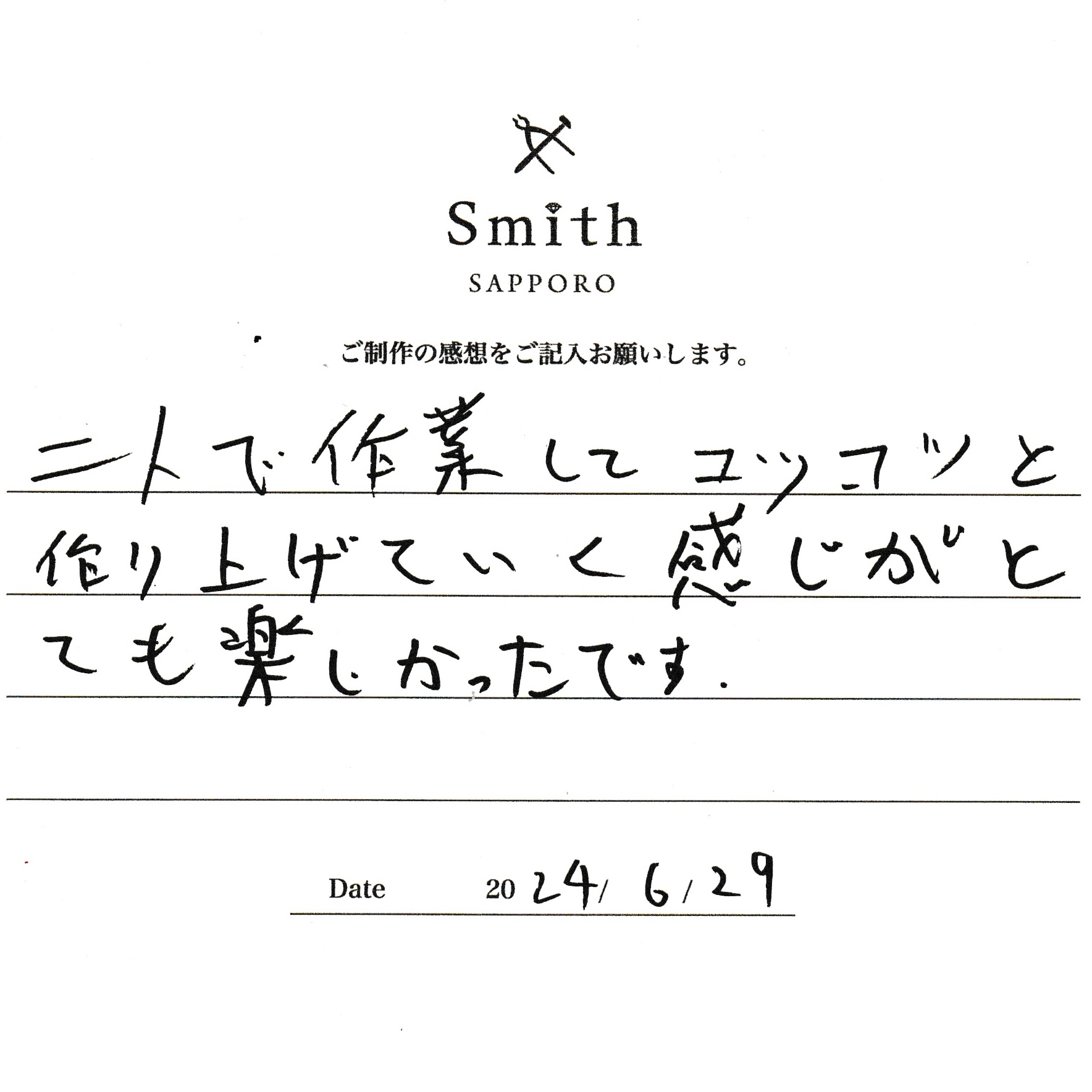 この度は、工房Smith京王プラザホテル札幌店で手作りペアリングのご制作誠にありがとうございました。