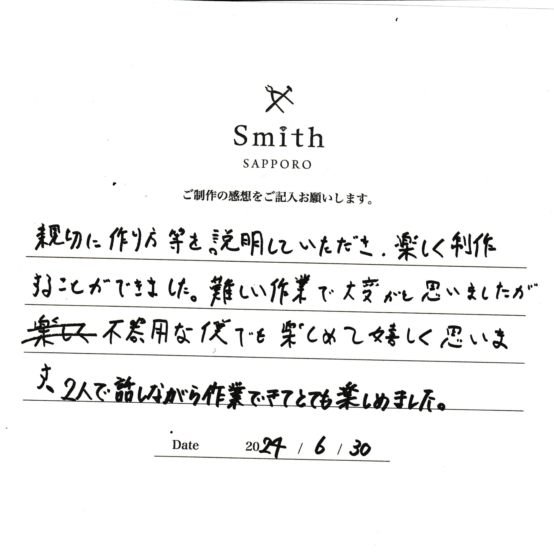 この度は、工房Smith京王プラザホテル札幌店で手作りペアリングのご制作誠にありがとうございました。