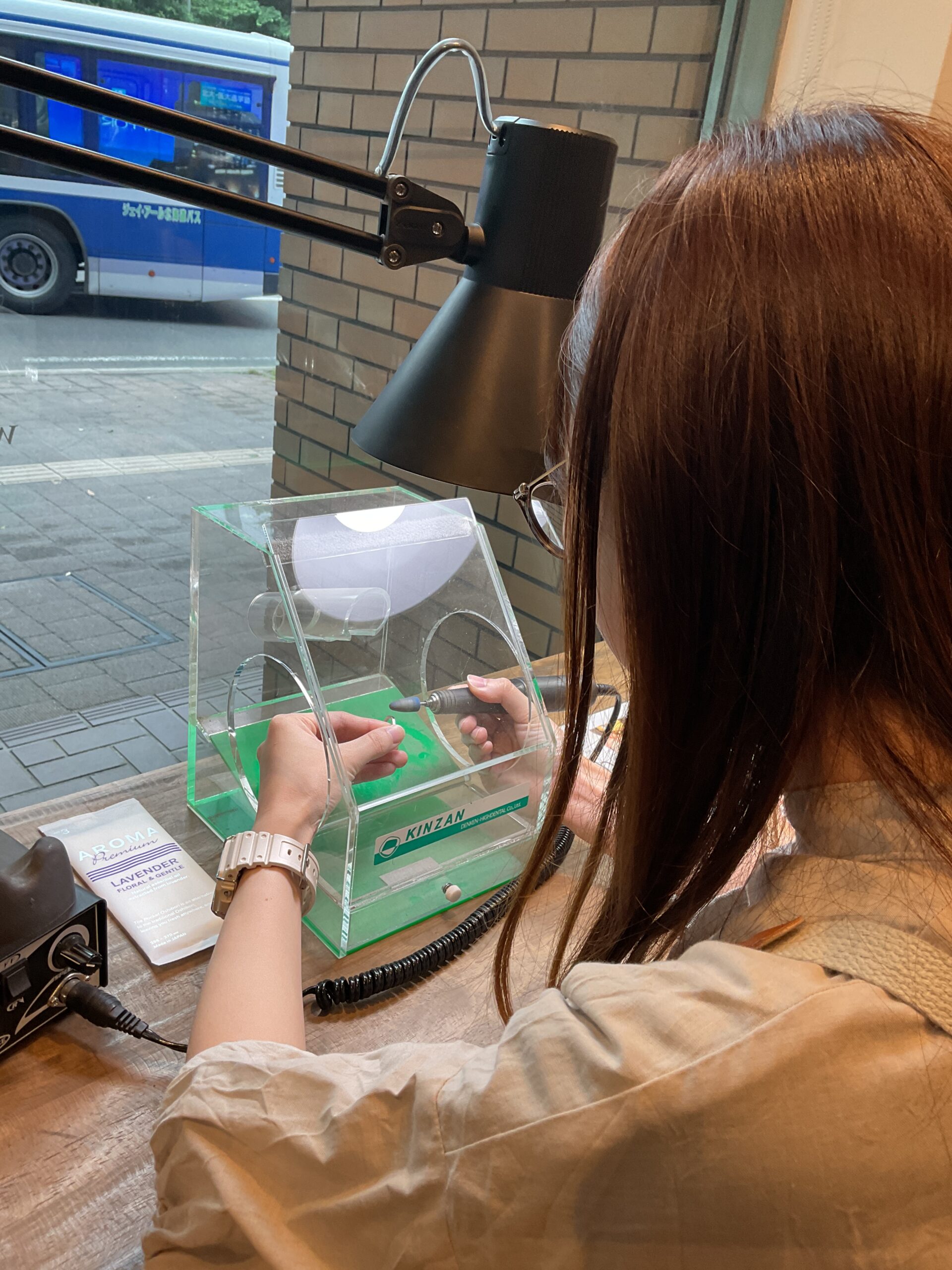 お預かりしたリングにはシャンパンゴールドのカラーコーティングが施され、内側にはお二人の記念日とイニシャルが刻印されますので、完成を楽しみにお待ちくださいませ。