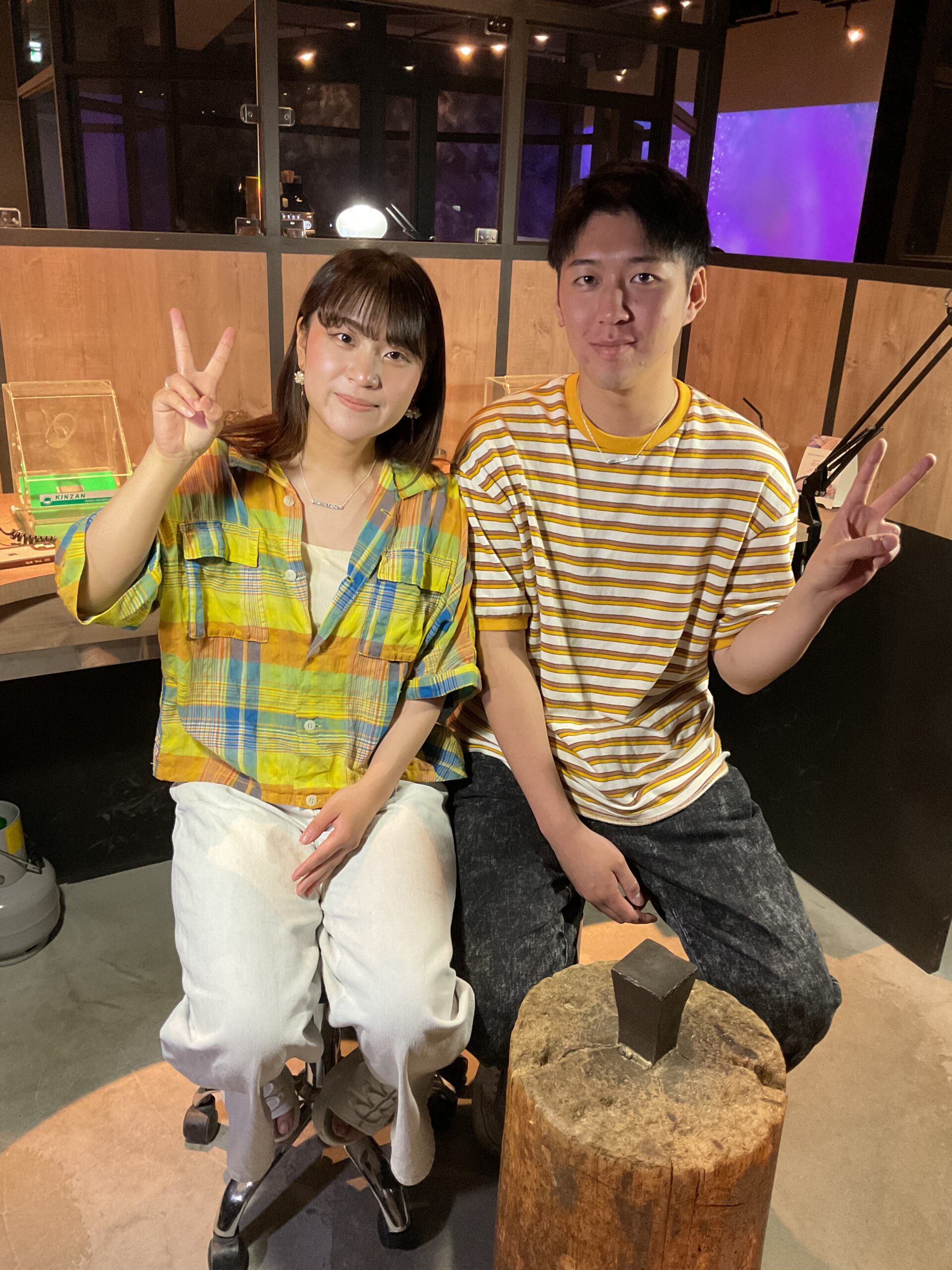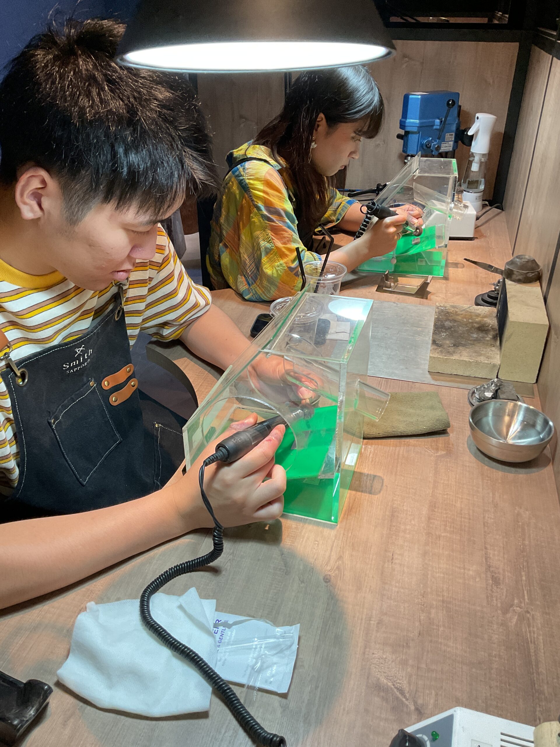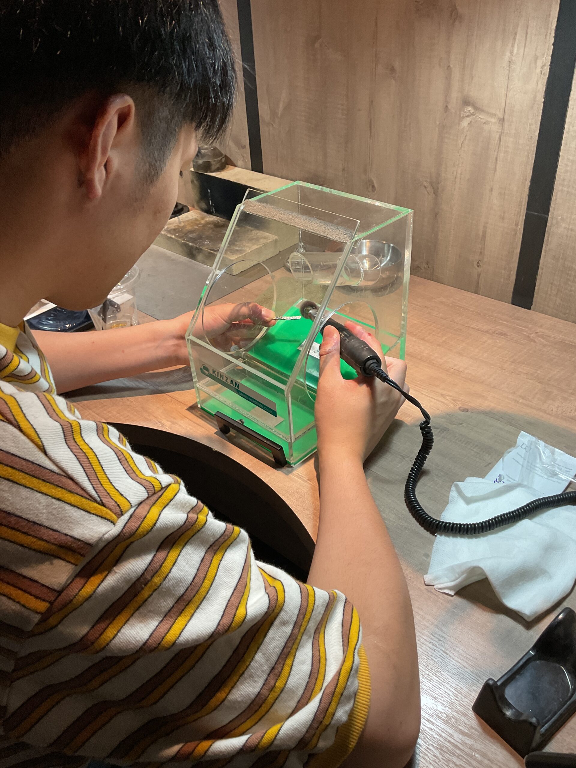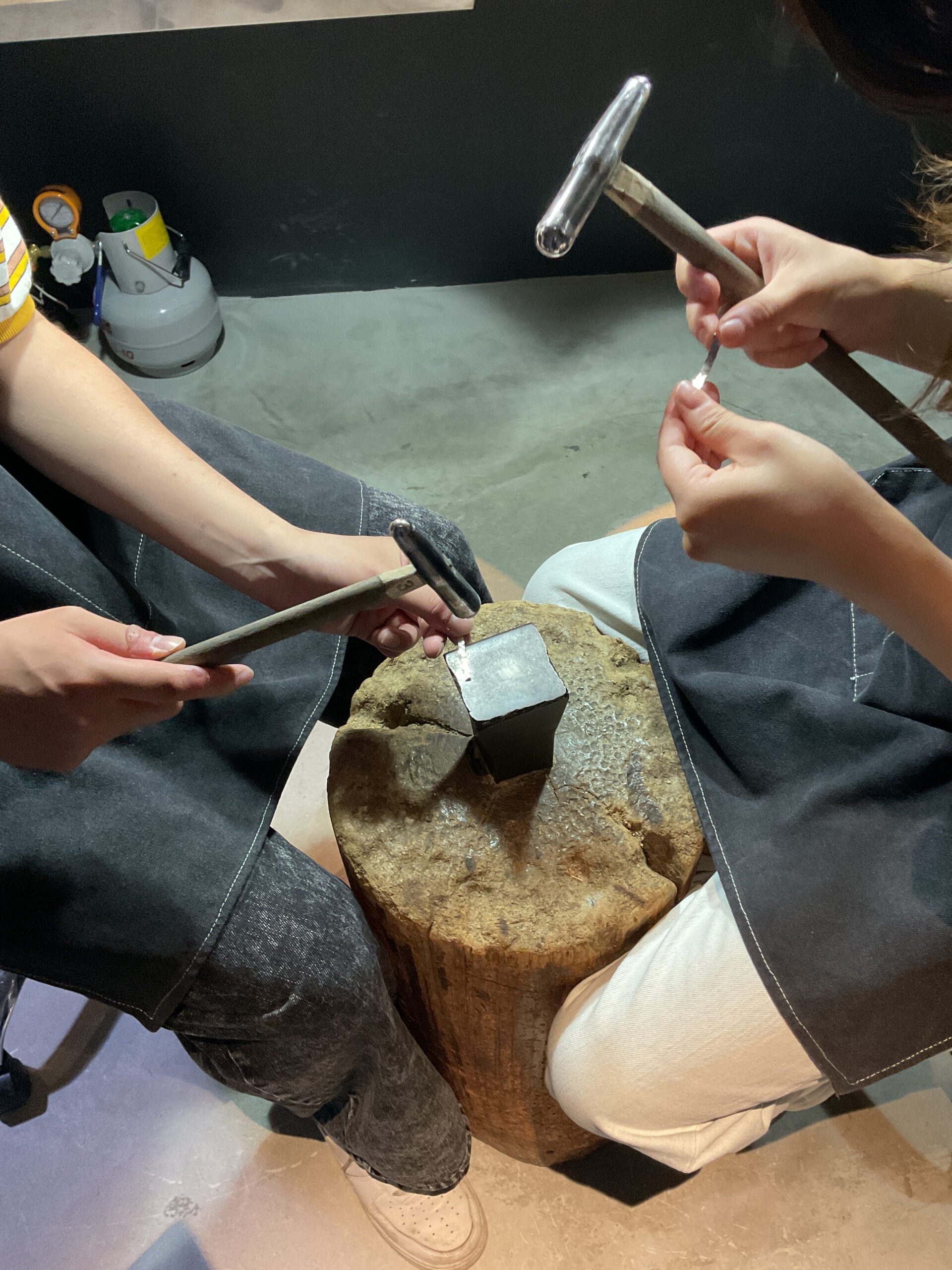 お互いのネックレスに丁寧に模様をつけていただき、他では買うことのできない世界に一つだけのネックレスが完成しました。