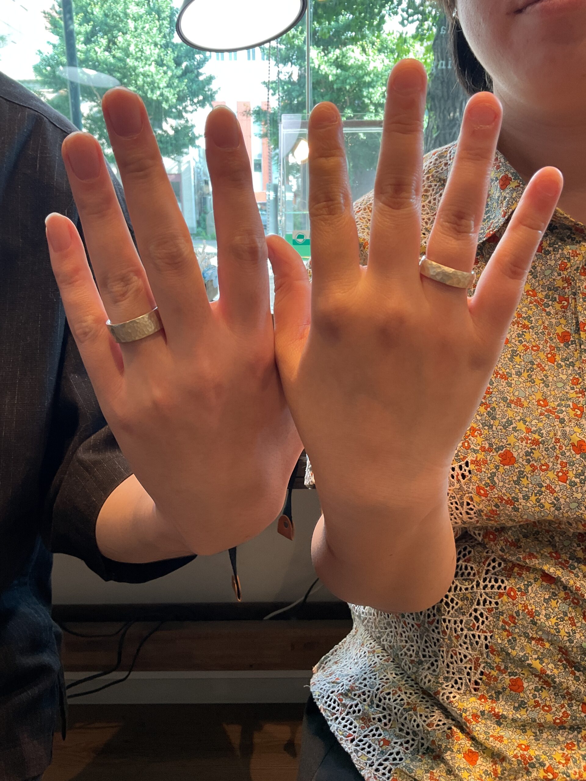 お揃いで上品で落ち着きのあるマットのハンマーのデザインに仕上げていただきました。