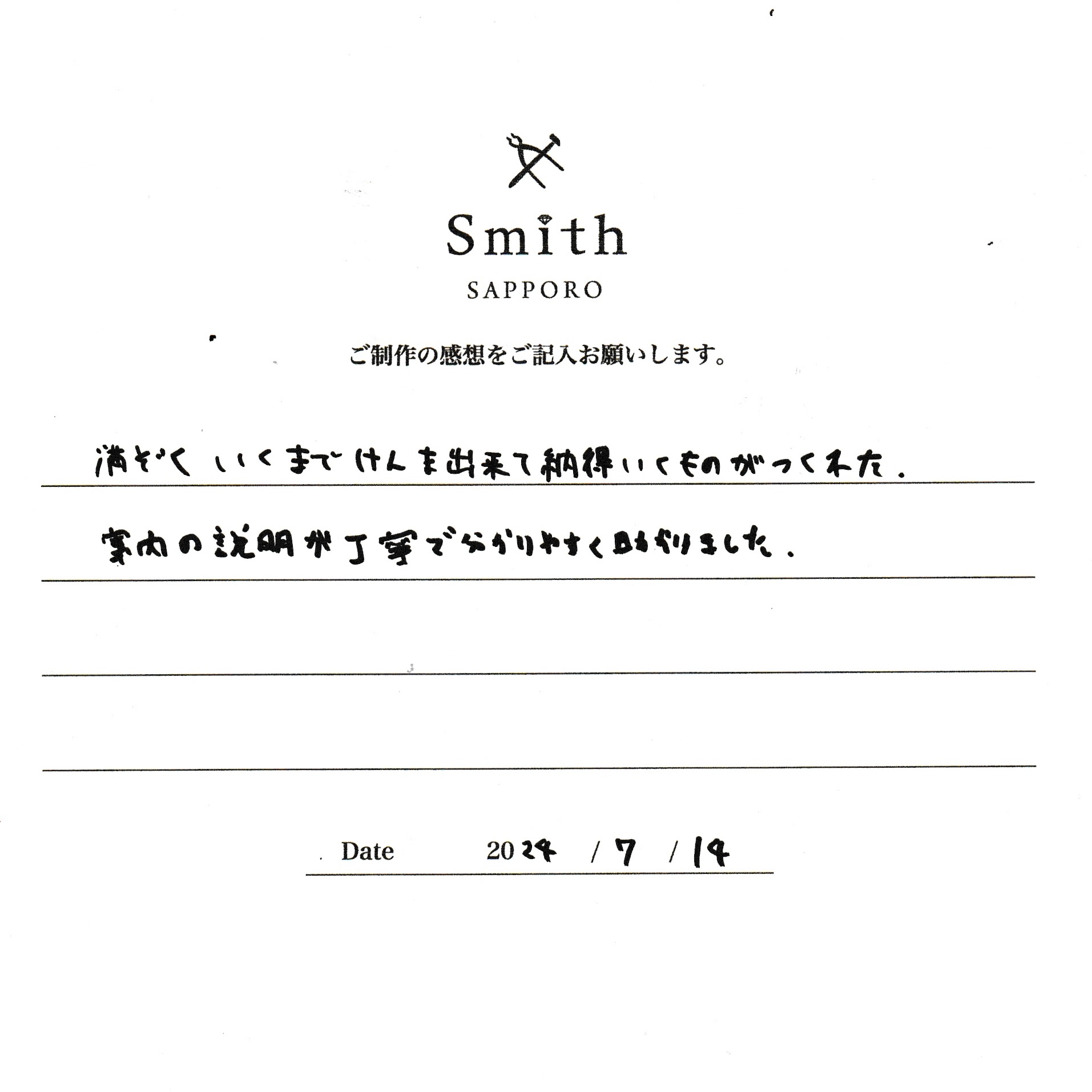 この度は、工房Smith京王プラザホテル札幌店で手作りペアリングのご制作誠にありがとうございました。