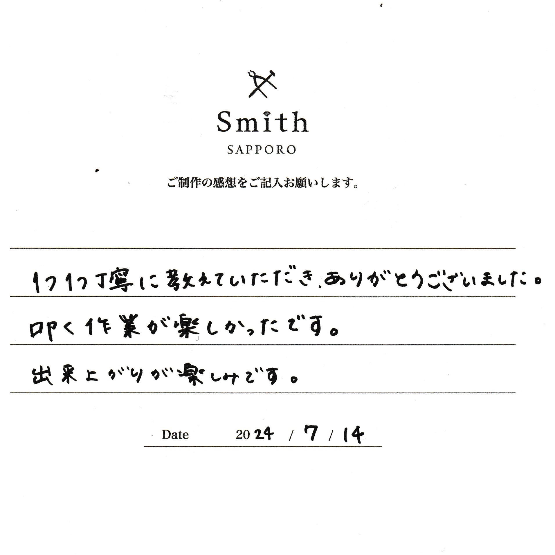この度は、工房Smith京王プラザホテル札幌店で手作りペアリングのご制作誠にありがとうございました。