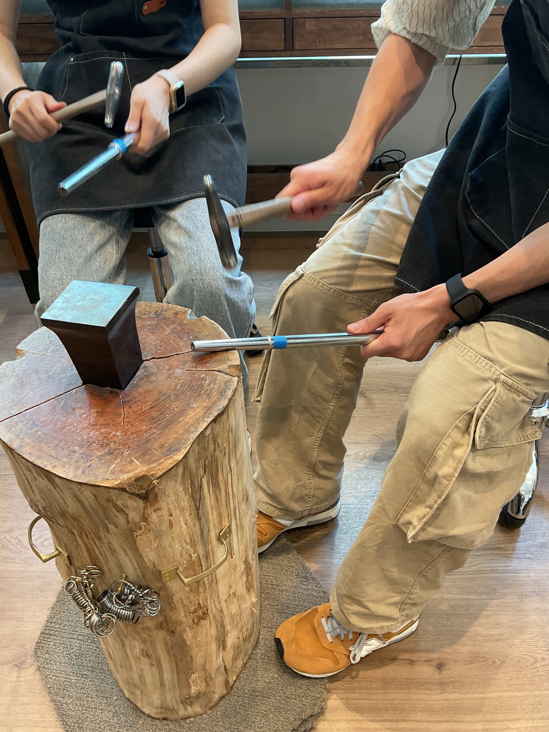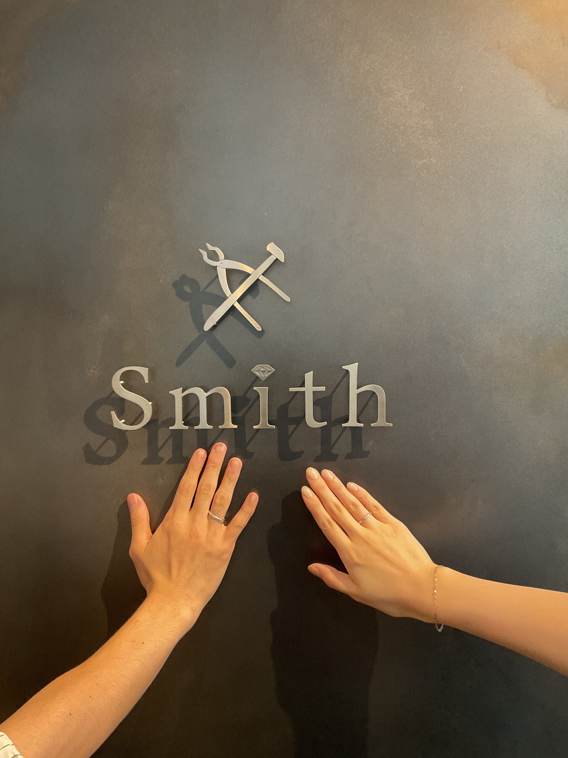 お揃いでキラキラに輝く鏡面ハンマーのリングに仕上げていただきました。