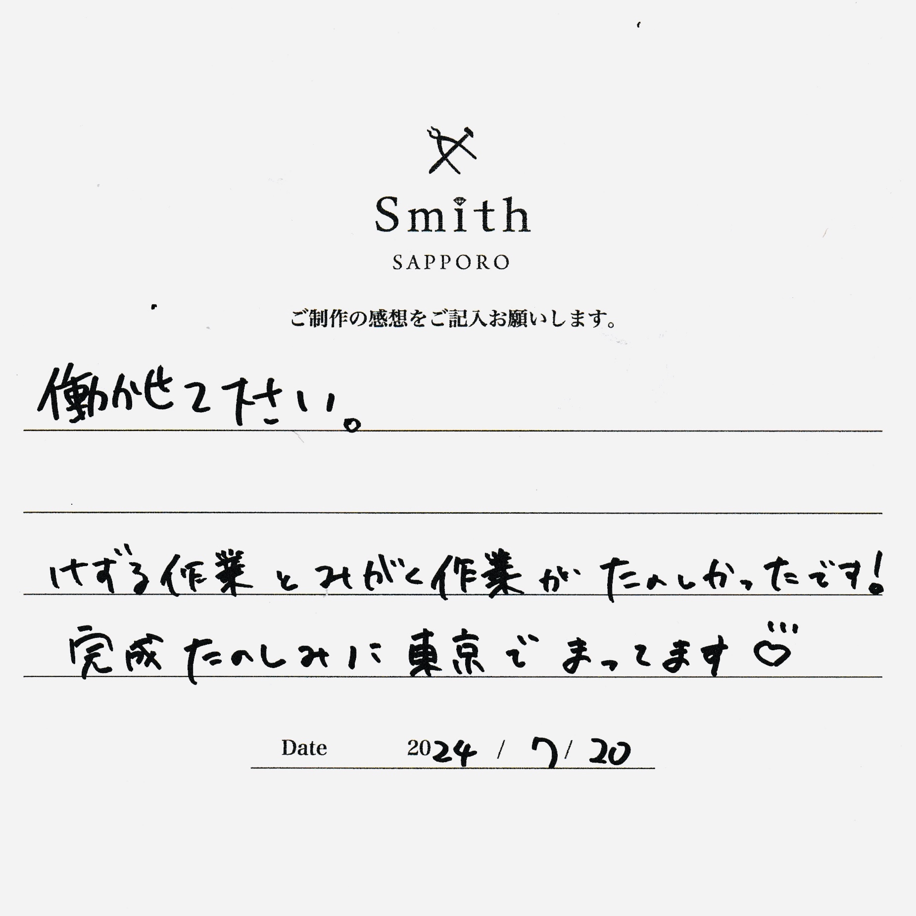 この度は、工房Smith京王プラザホテル札幌店で手作りペアリングのご制作誠にありがとうございました。