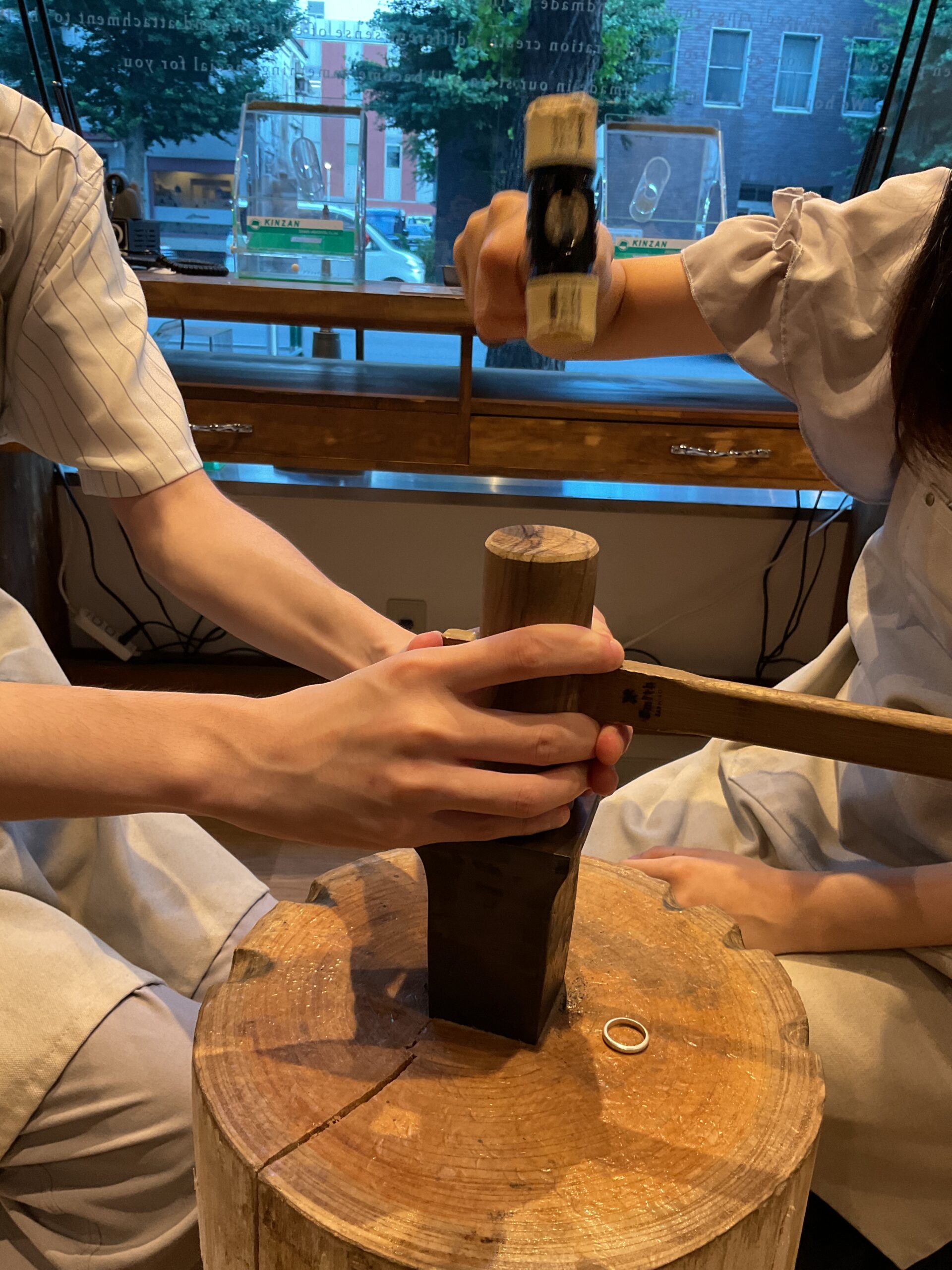 リングを叩く作業が大変だったかとは思いますが、苦労して作った分、より思い入れのあるペアリングになっていましたら幸いです。