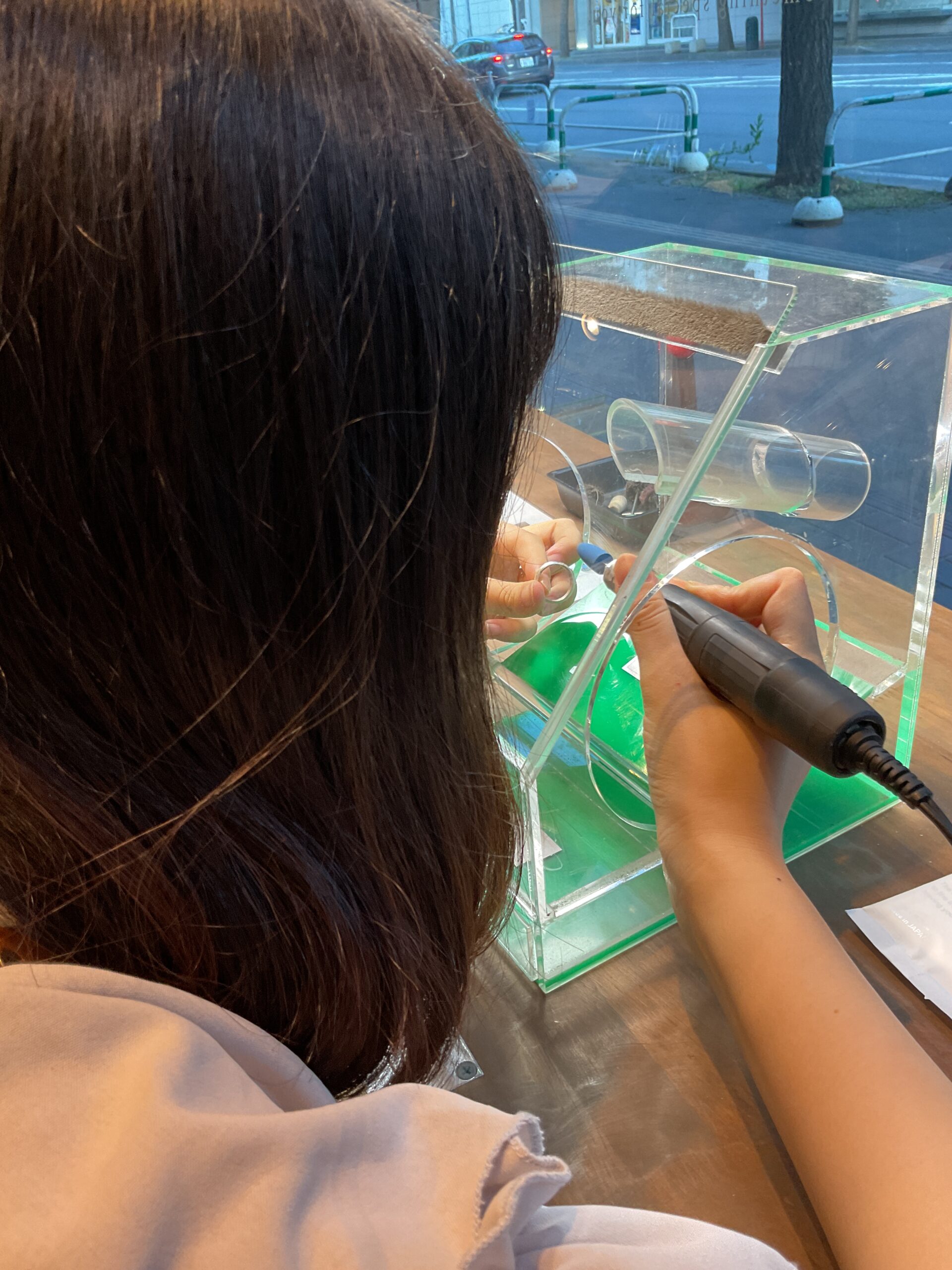 初めての指輪作りを体験したのですが、一から丁寧に教えていただき、とても楽しく指輪作りができました。