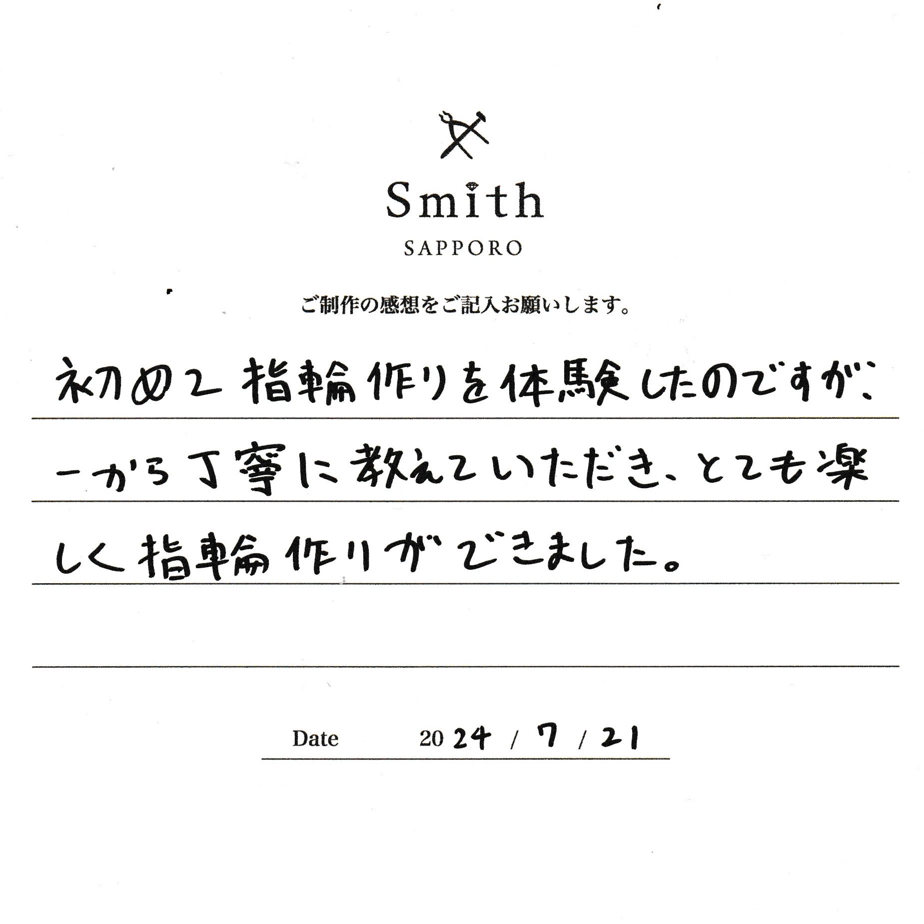 この度は、工房Smith京王プラザホテル札幌店で手作りペアリングのご制作誠にありがとうございました。