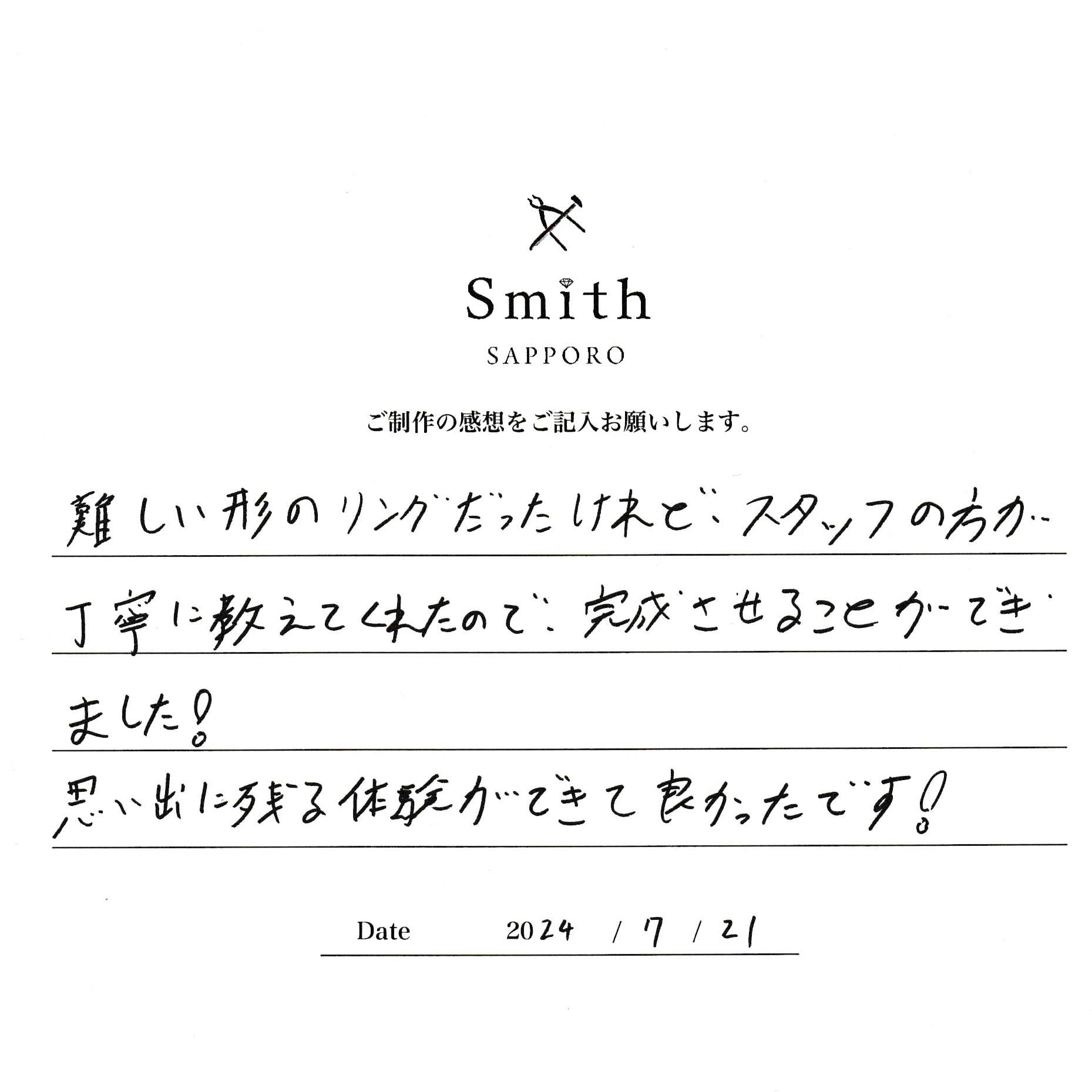 |K様・T様【難しい形のリングだったけどスタッフの方が丁寧に教えてくれたので完成させることができました】