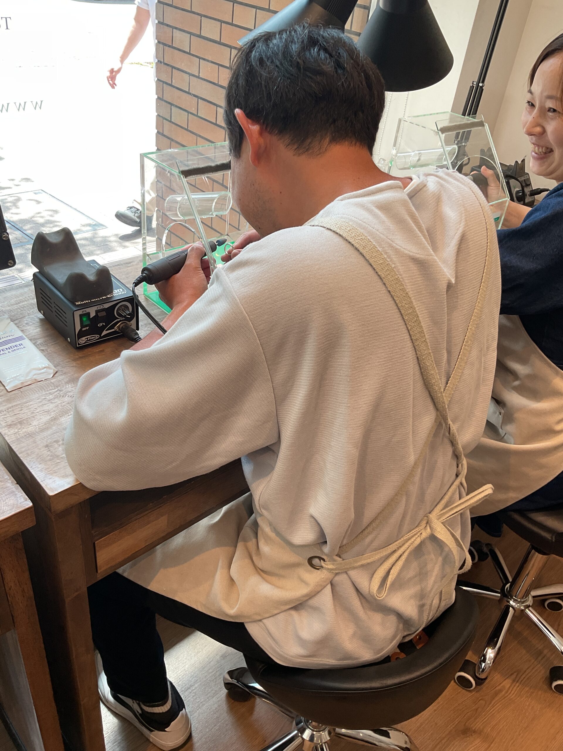 お二人が仲睦まじく制作されたリングは、お二人ともピンクゴールドのカラーコーティングが施されます。