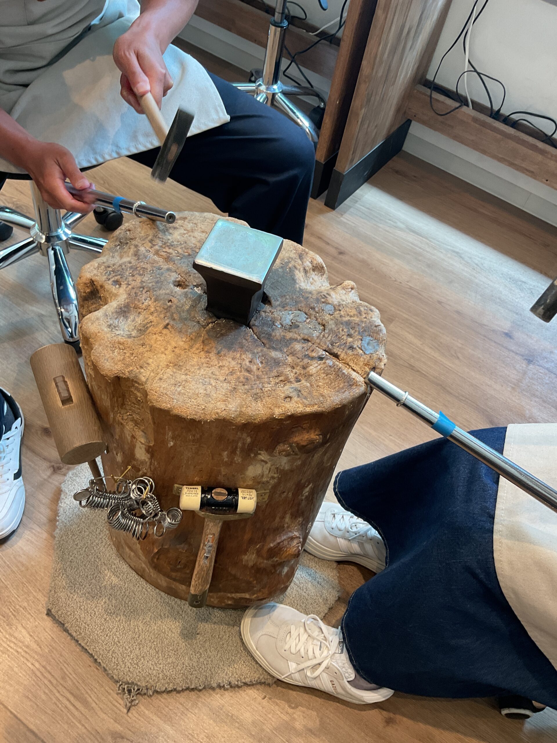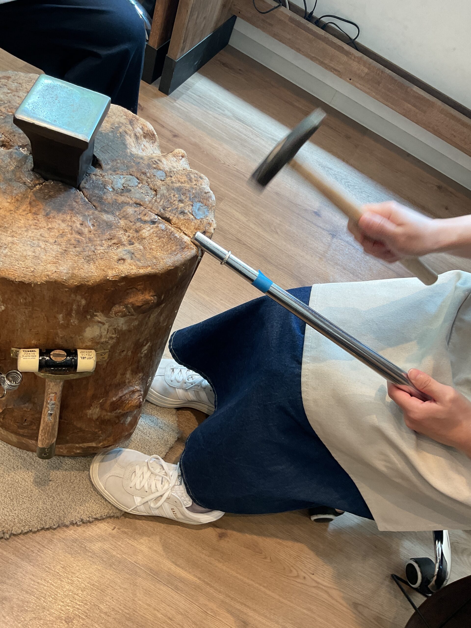 テクスチャーは、お客様が叩いたハンマーの模様がそのまま残る鏡面のハンマー模様にされました。