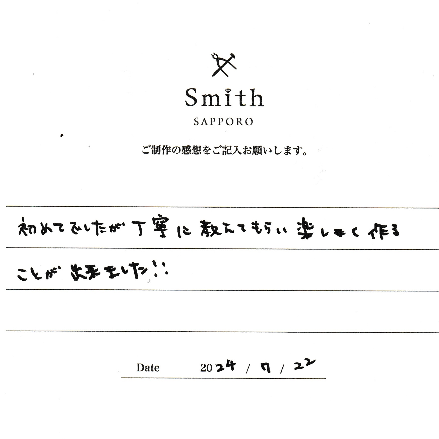 この度は、工房Smith京王プラザホテル札幌店で手作りペアリングのご制作誠にありがとうございました。