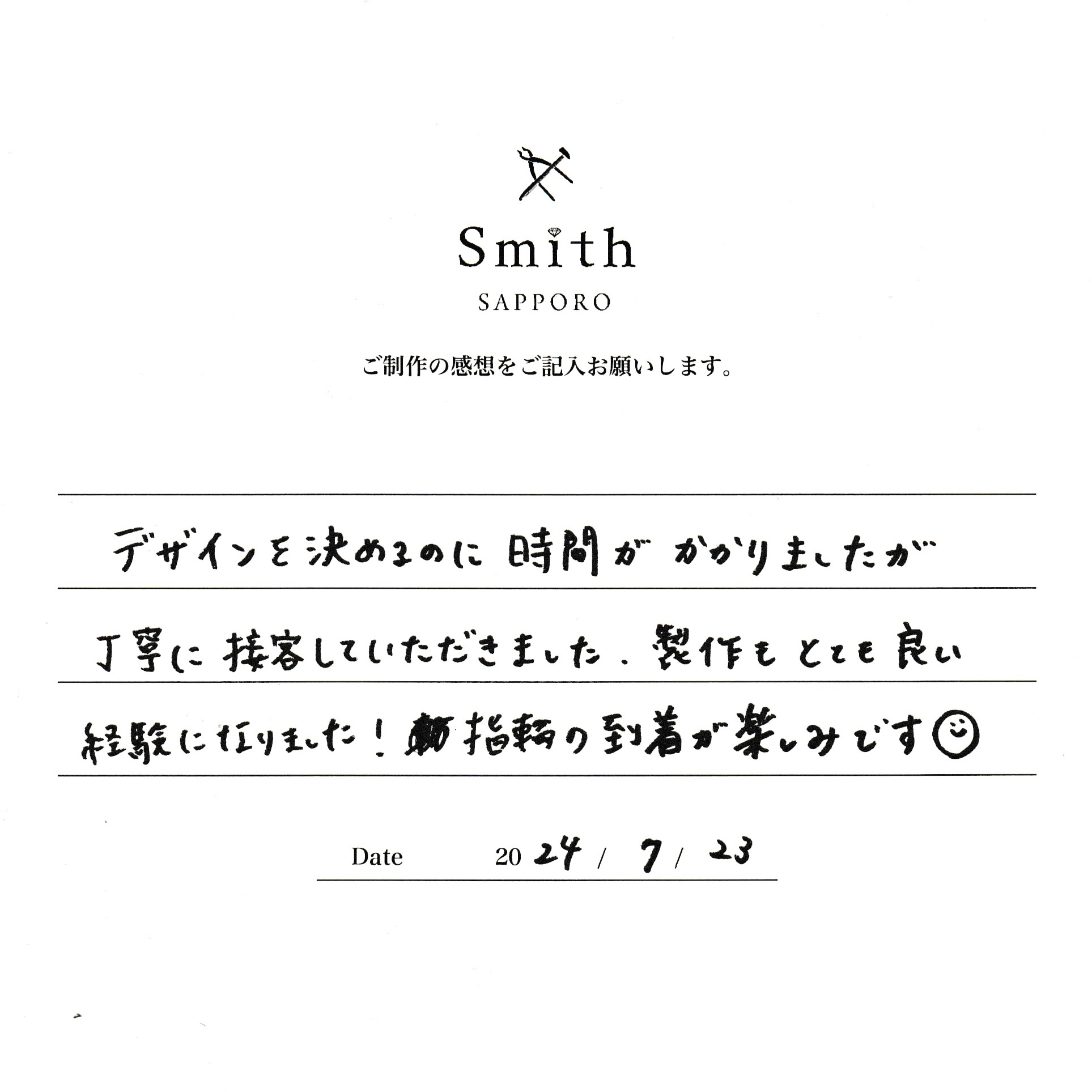 この度は、工房Smith札幌本店で手作りペアリングのご制作誠にありがとうございました。