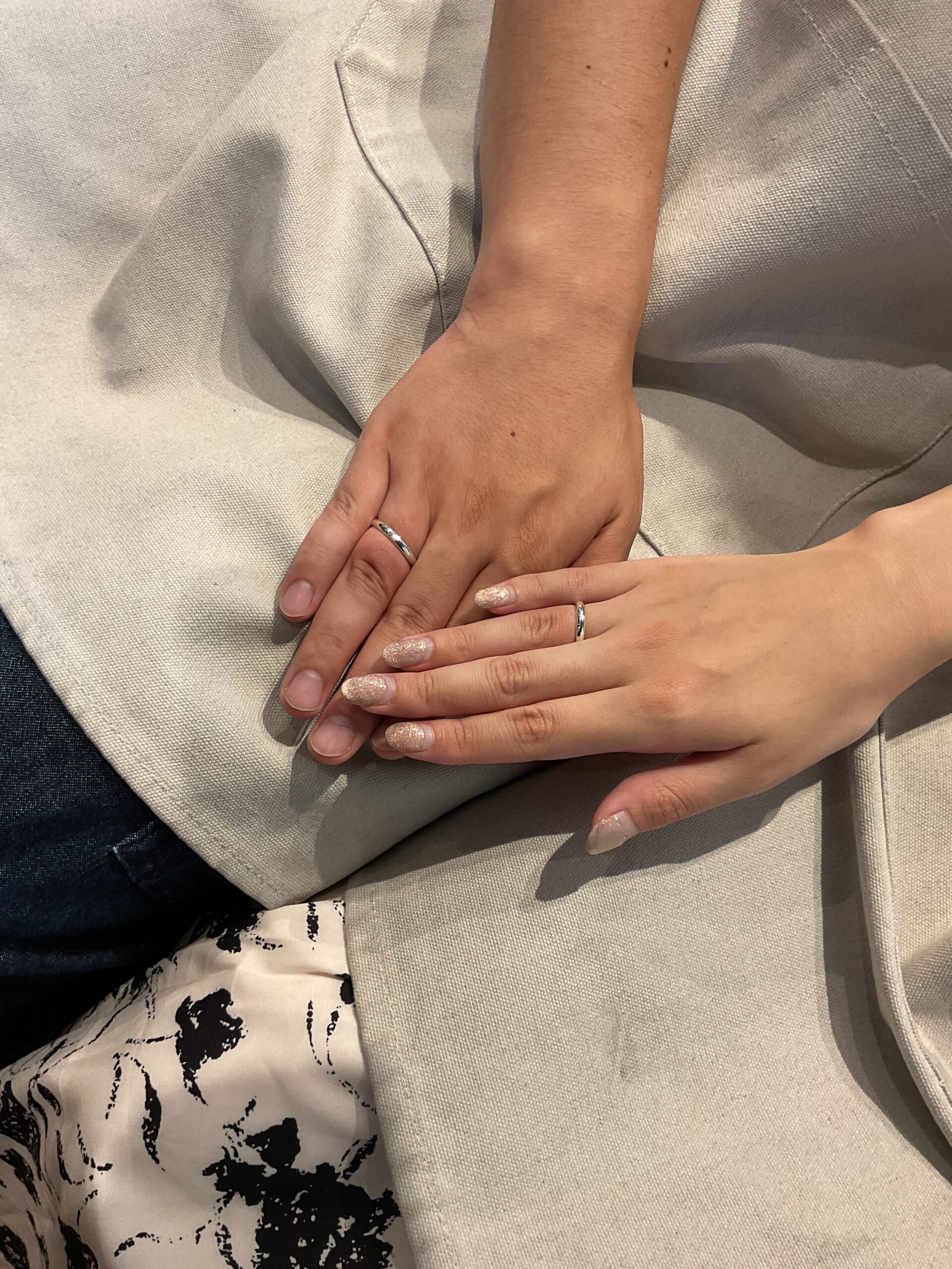 内側にもおふたりの記念日の手打ち刻印をお入れする、より心のこもったペアリングになりましたね。