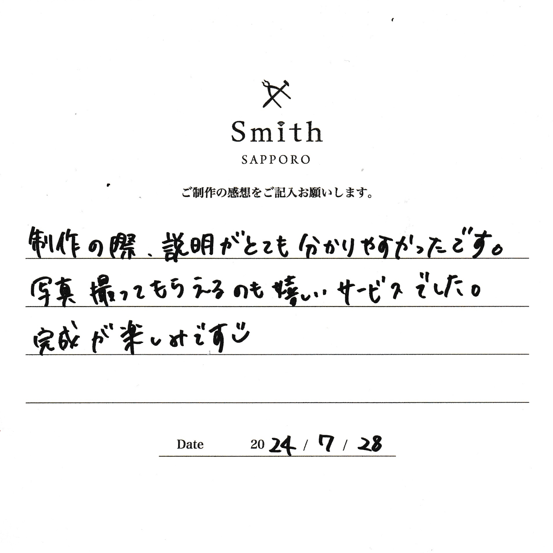 この度は、工房Smith京王プラザホテル札幌店で手作りペアリングのご制作誠にありがとうございました。