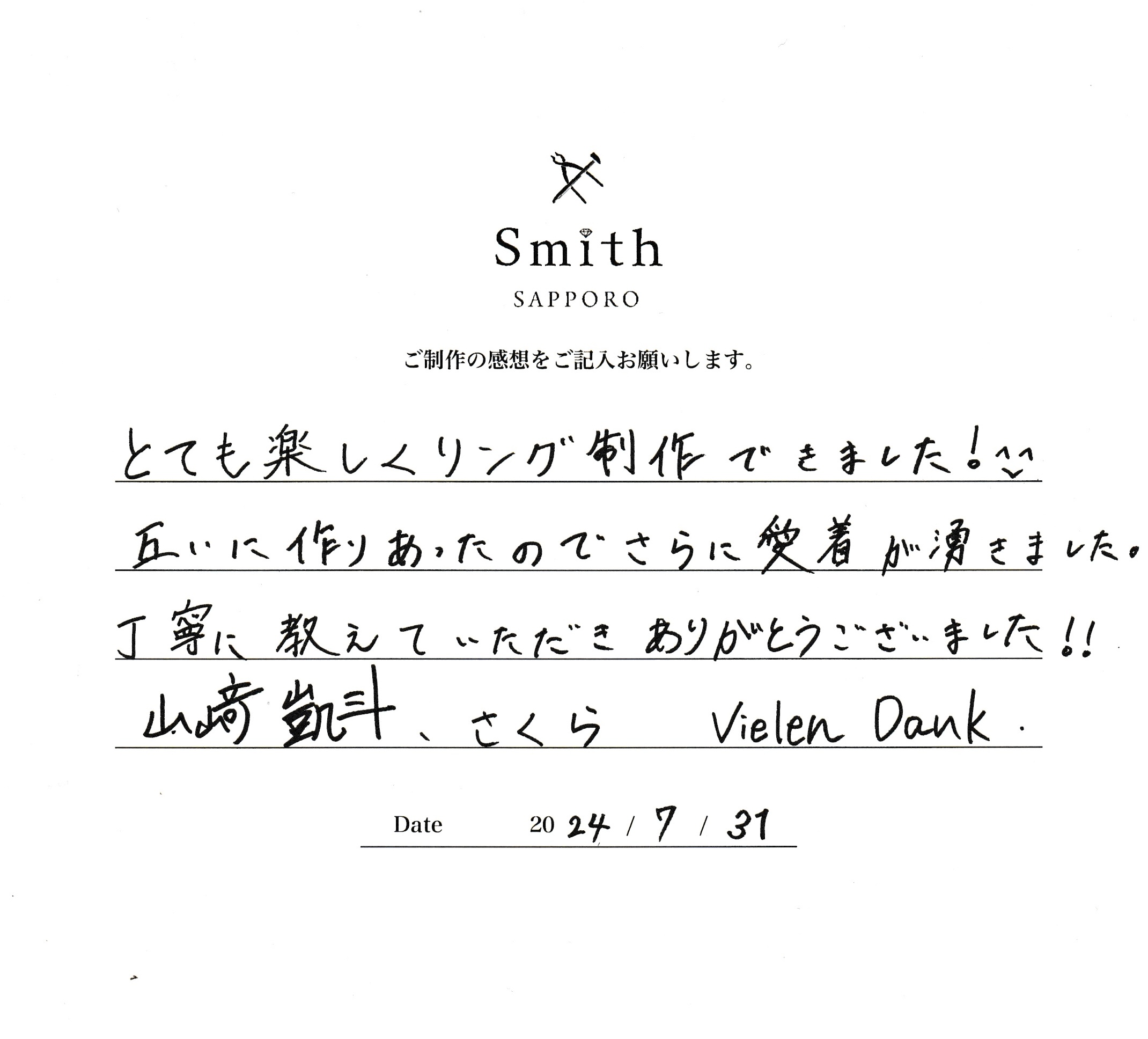 とても楽しくリング制作ができました!