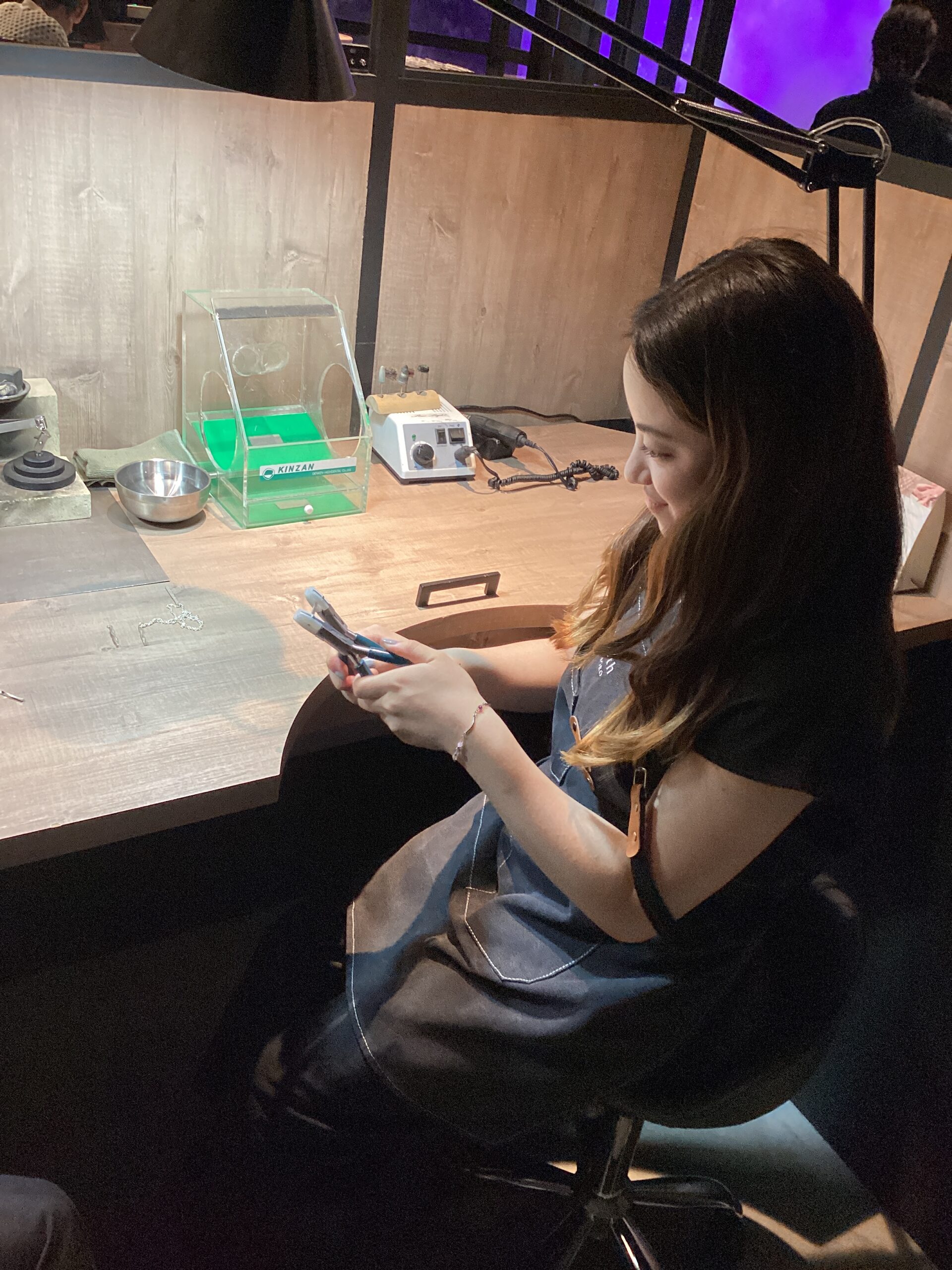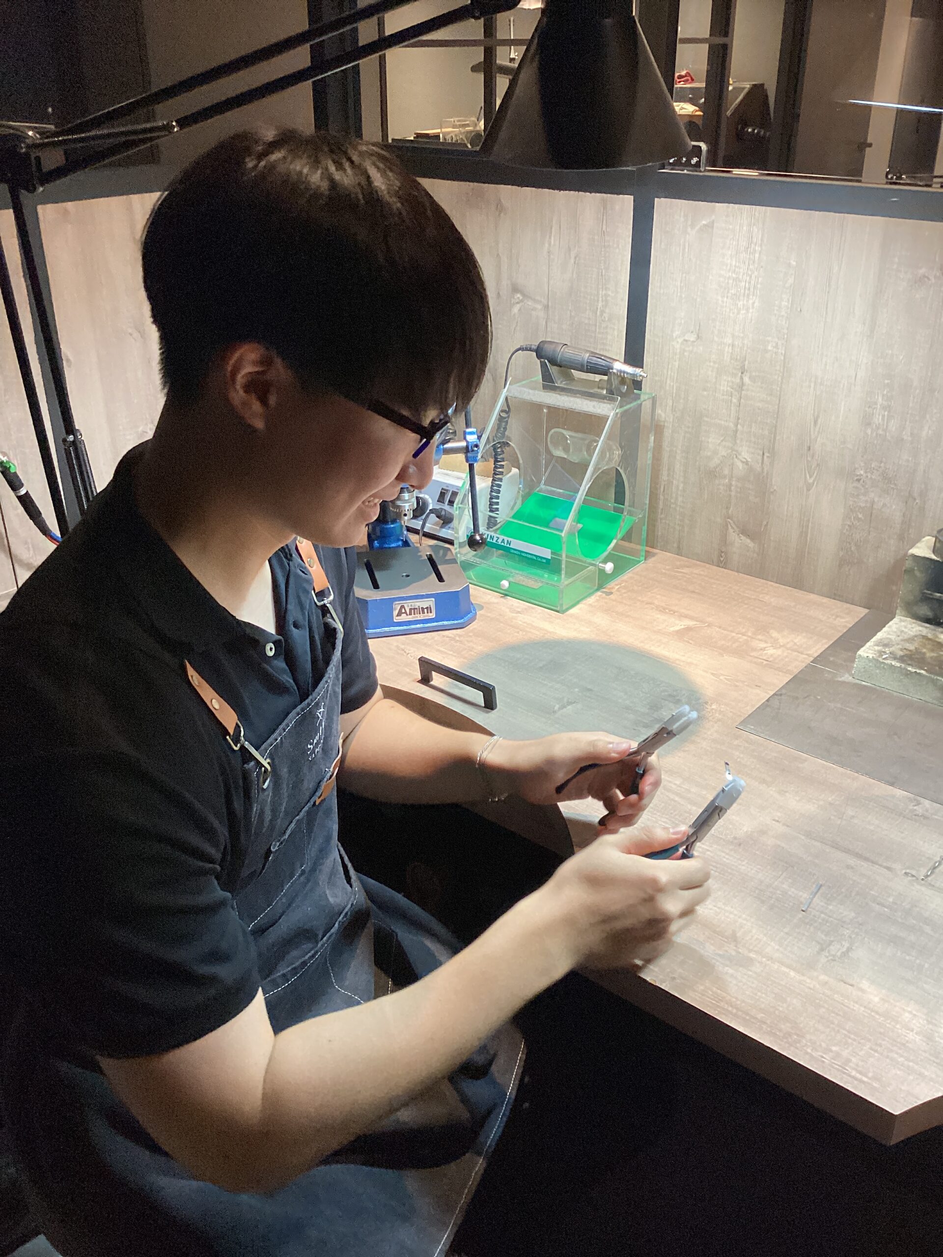 シルバーをひねる作業では硬さに驚かれたり、磨きの作業では無言になるほどに集中していただいたりと、初めての作業に緊張されながらも終始笑顔でご制作いただけまして、とても嬉しく存じます。