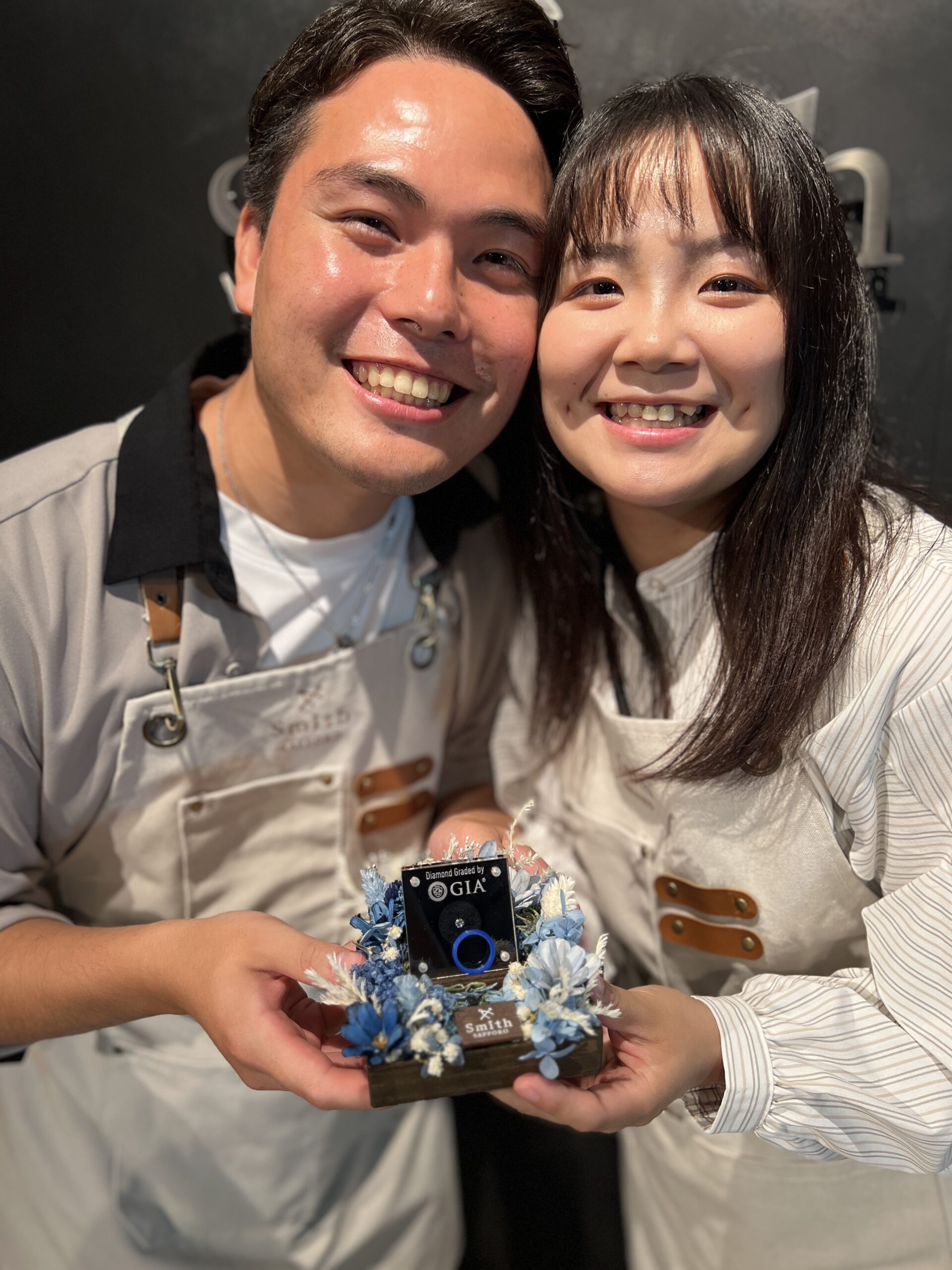 お二人の素敵な1年記念のご旅行に、仲良く2人で婚約指輪をご制作にいらしてくれました!