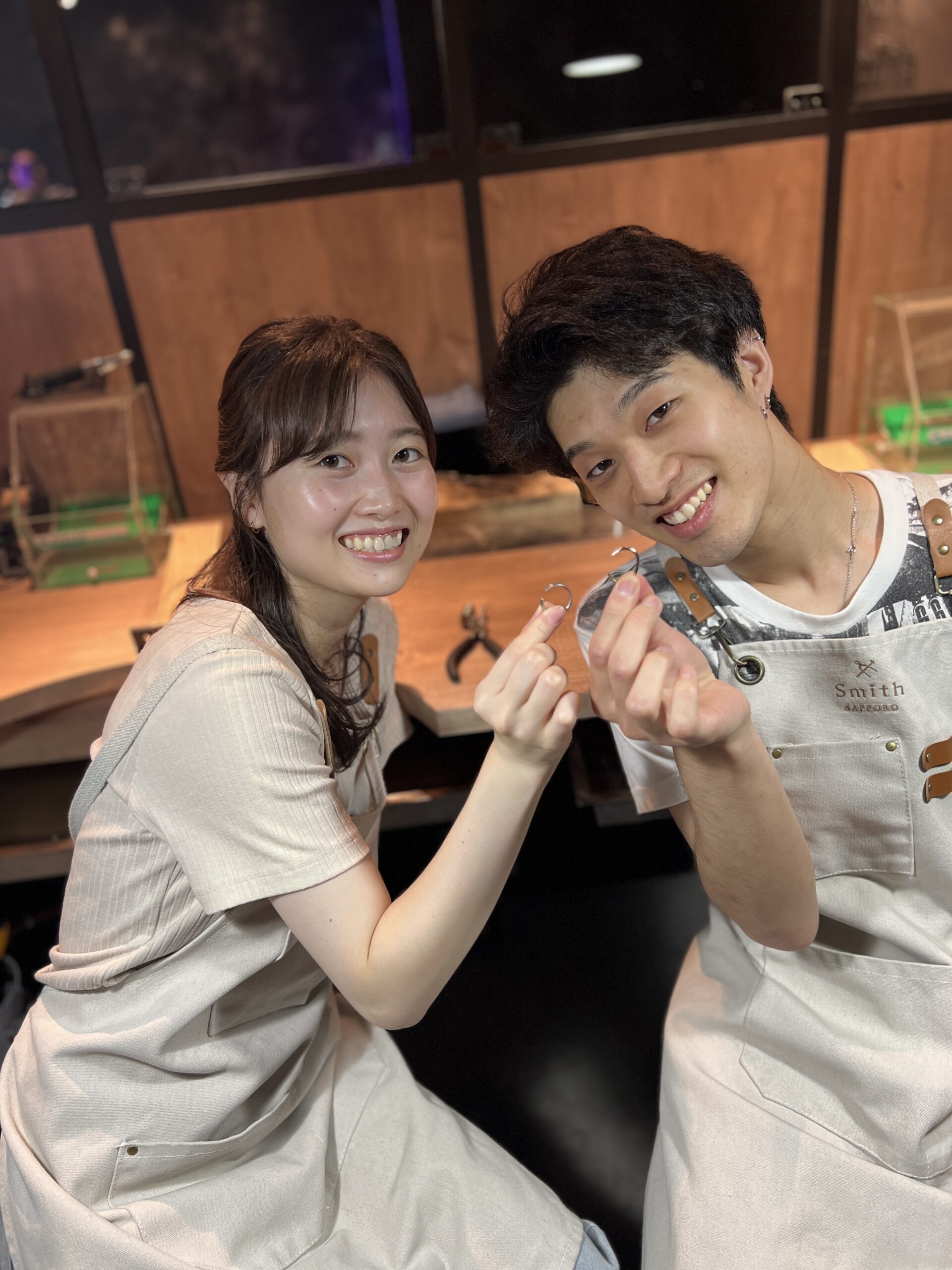 交換して作りあった指輪は、お互い補って作業を進め、2本とも綺麗に仕上がりました。