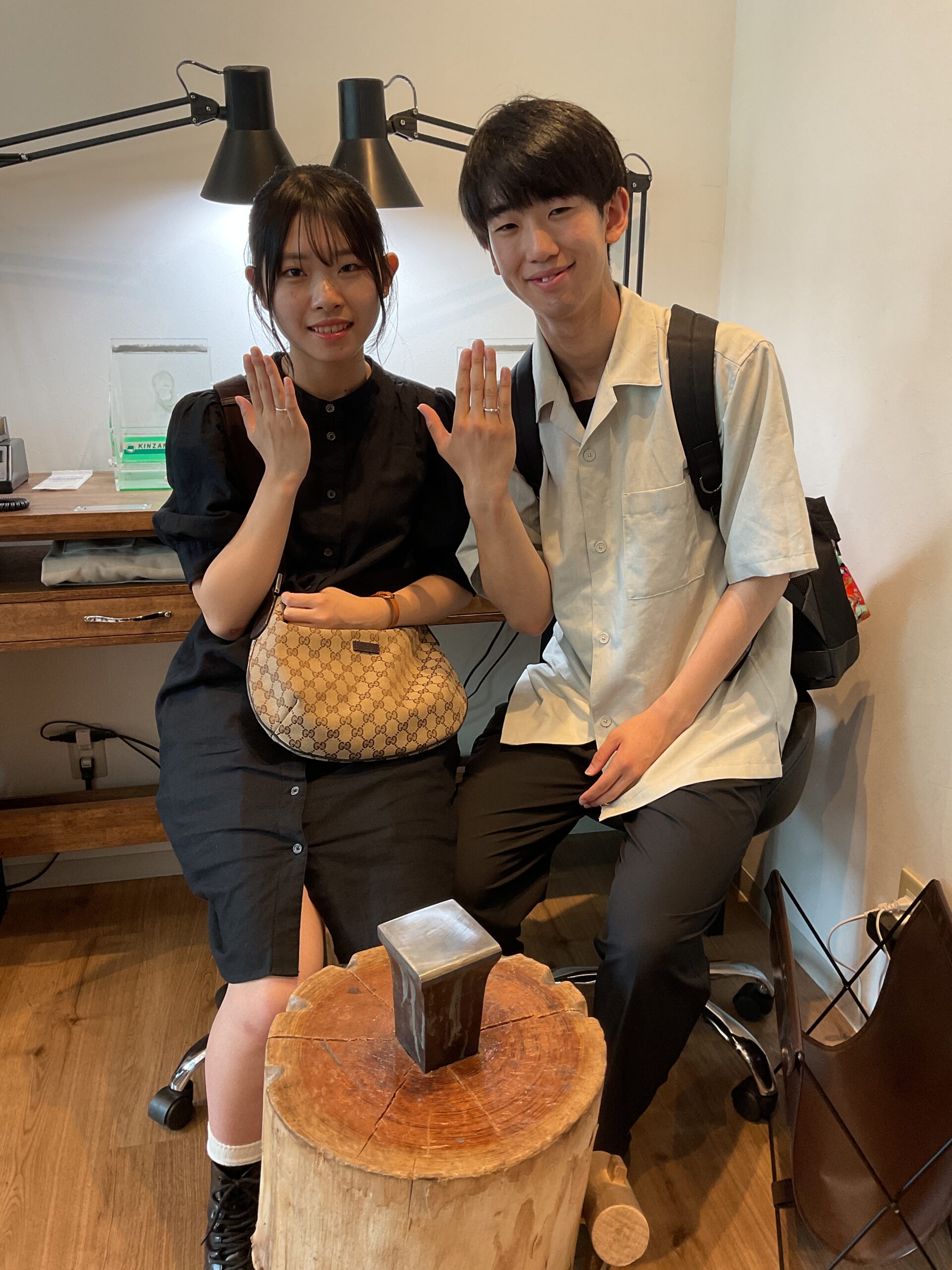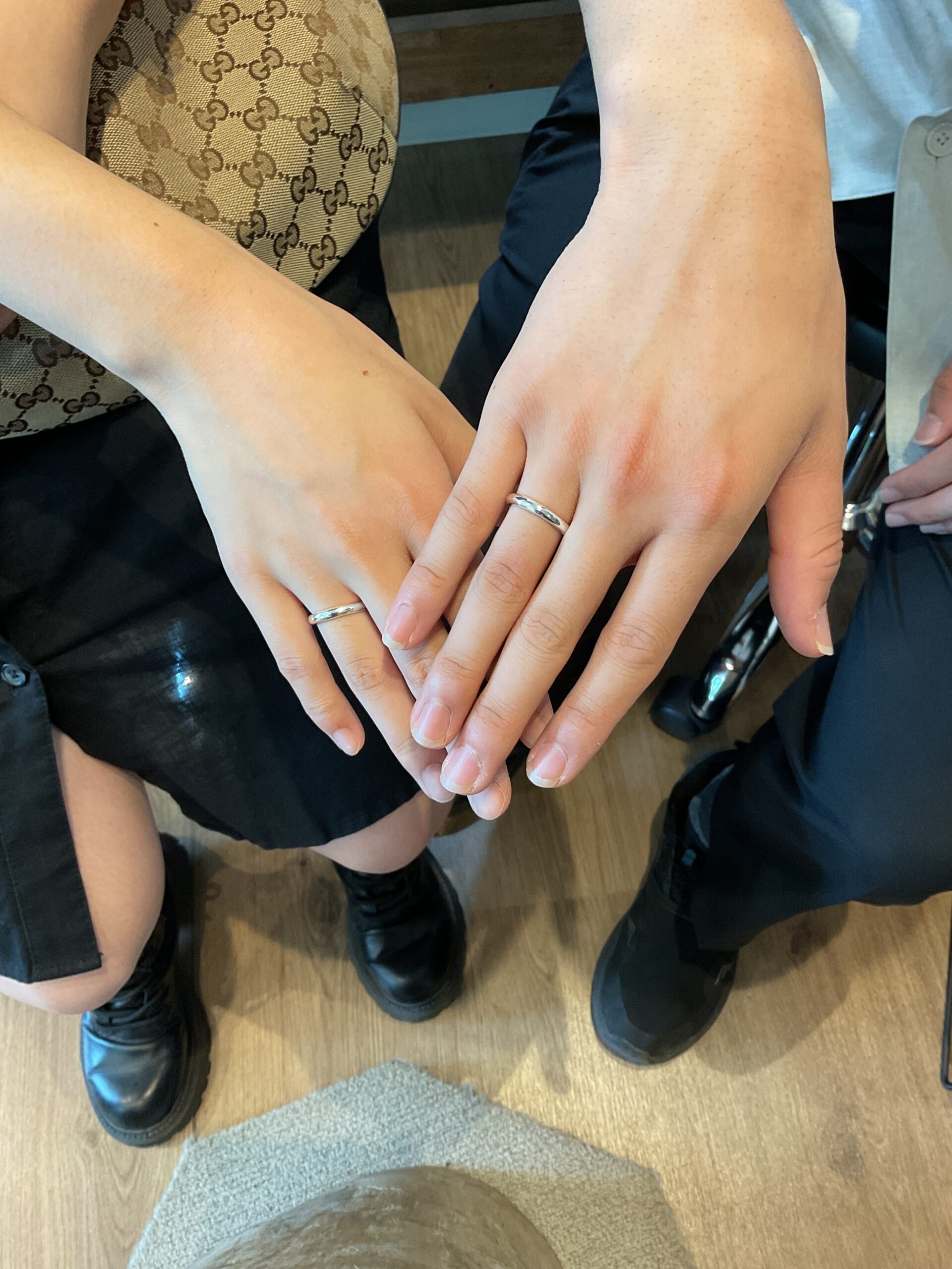 内側にはお二人のイニシャルが刻印され、思い出も詰まった素敵なペアリングになりましたね。
