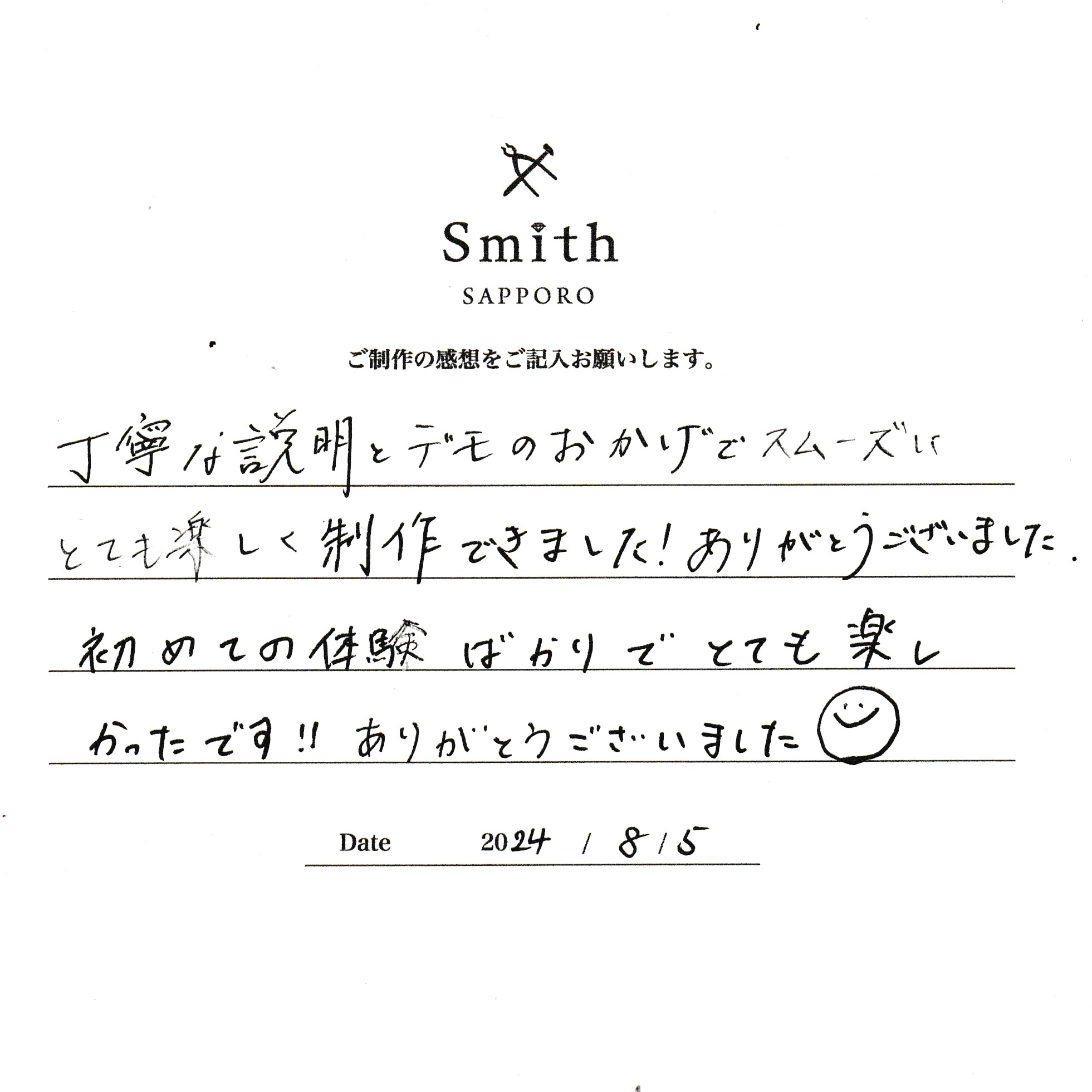 この度は、工房Smith京王プラザホテル札幌店で手作りペアリングのご制作誠にありがとうございました。