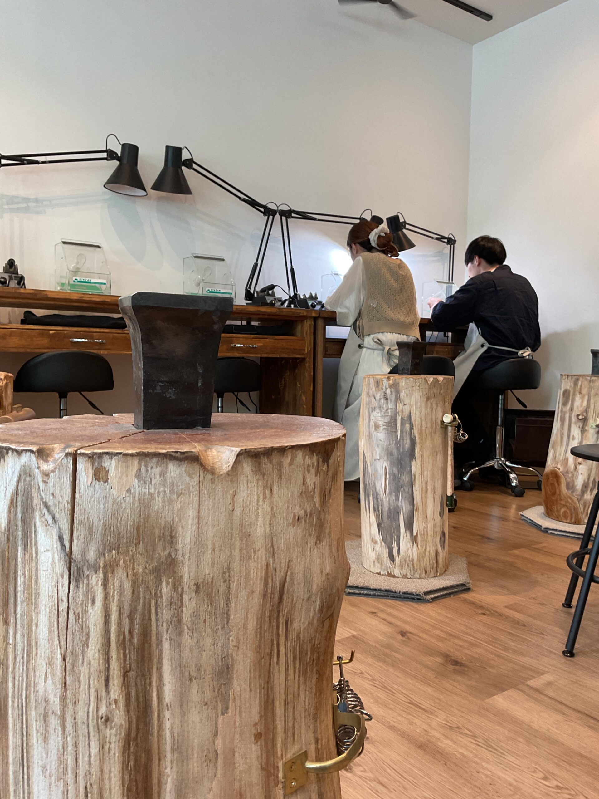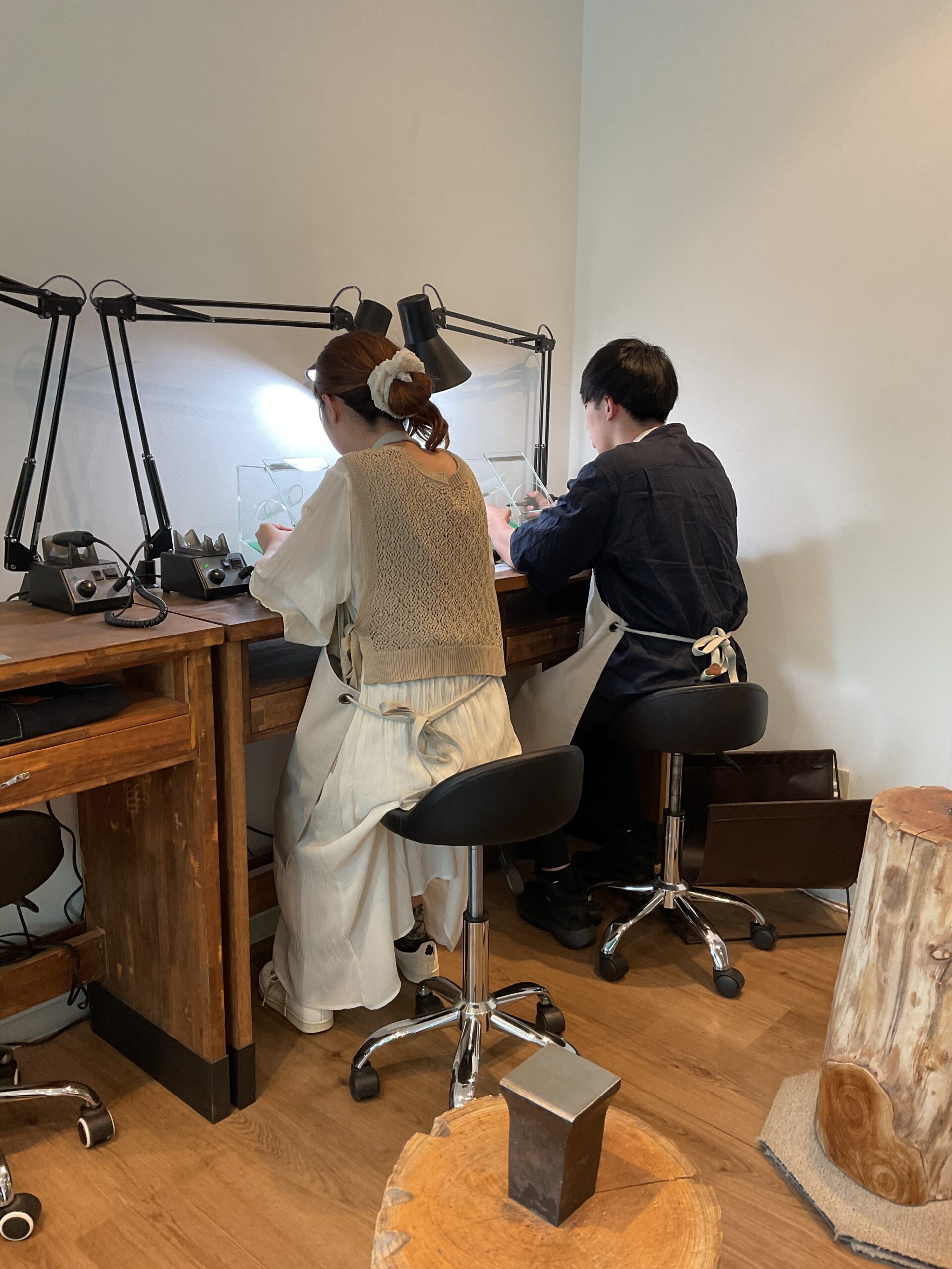 指輪のデザインや幅、石の種類やサイズ、留める部位、加工など全て自分たちで考えて作れて楽しかったです。