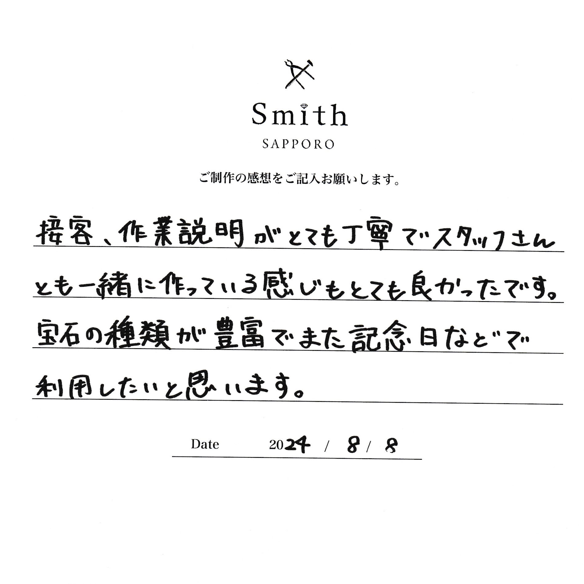 S様【宝石の種類が豊富でまた記念日などで利用したいと思います】
