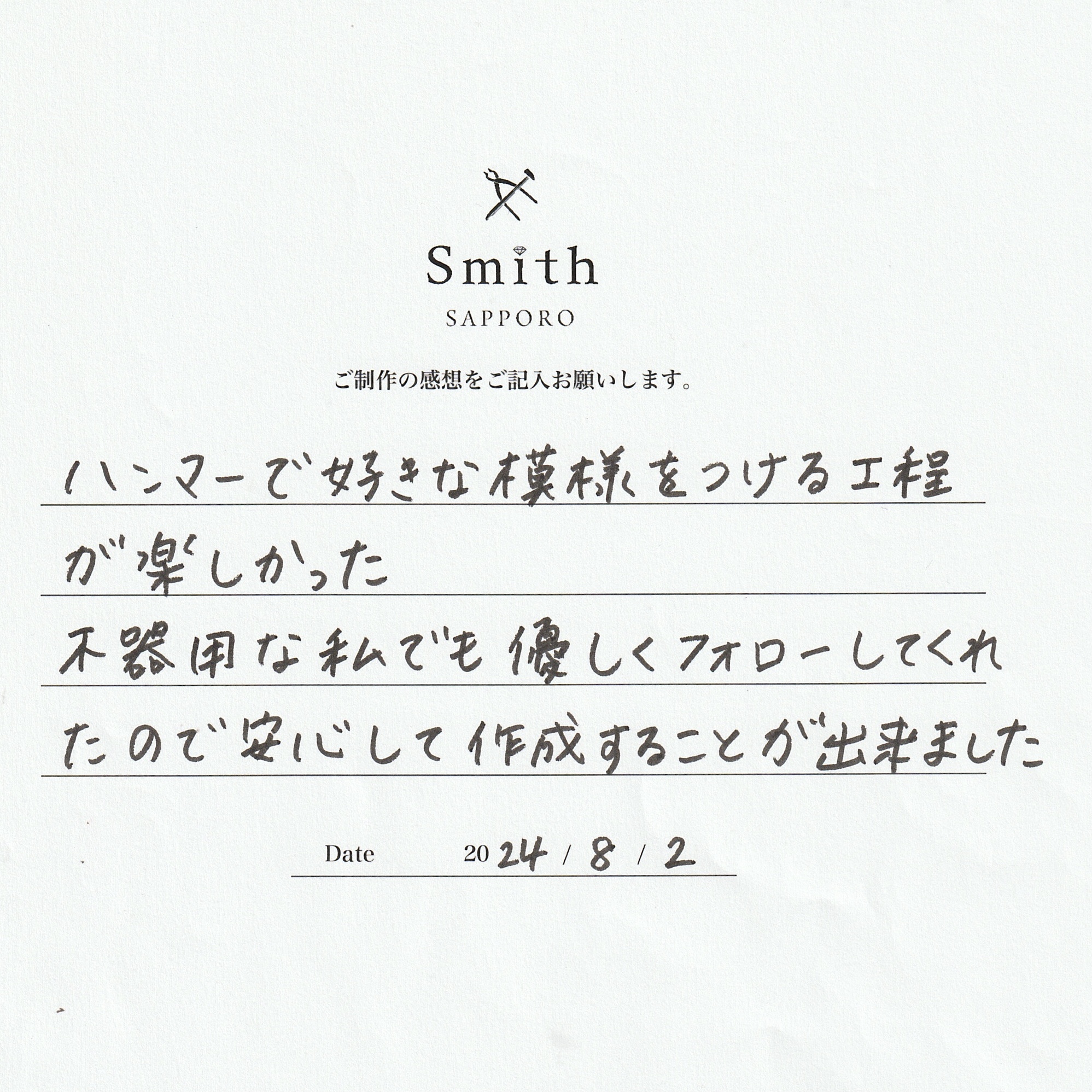 M様【ハンマーで好きな模様をつける工程が楽しかった】