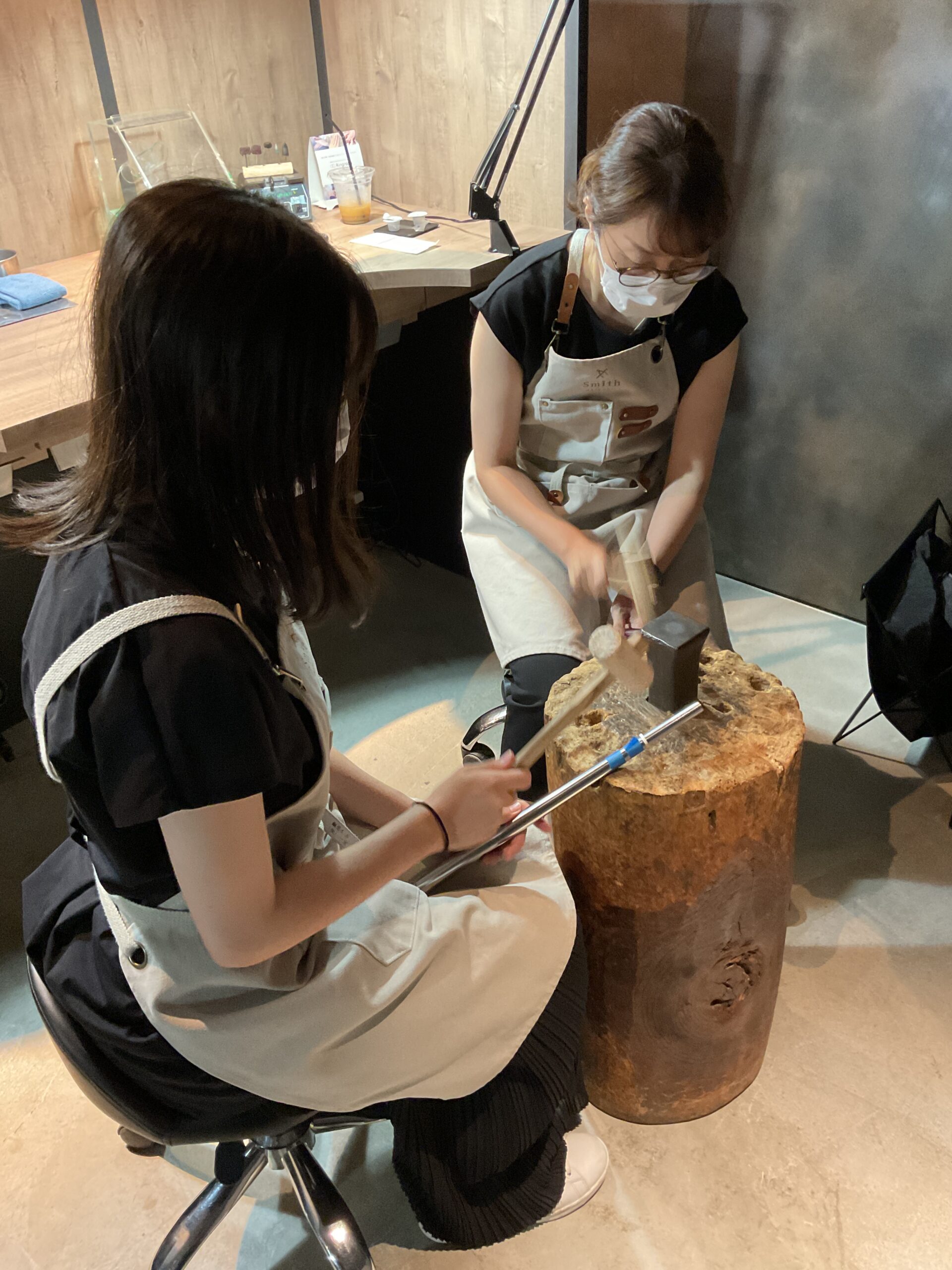 ハンマー模様をつけるのがお二人ともとてもお上手で、一周ぐるっと綺麗に満遍なく世界に一つだけの模様を入れてくださいました。