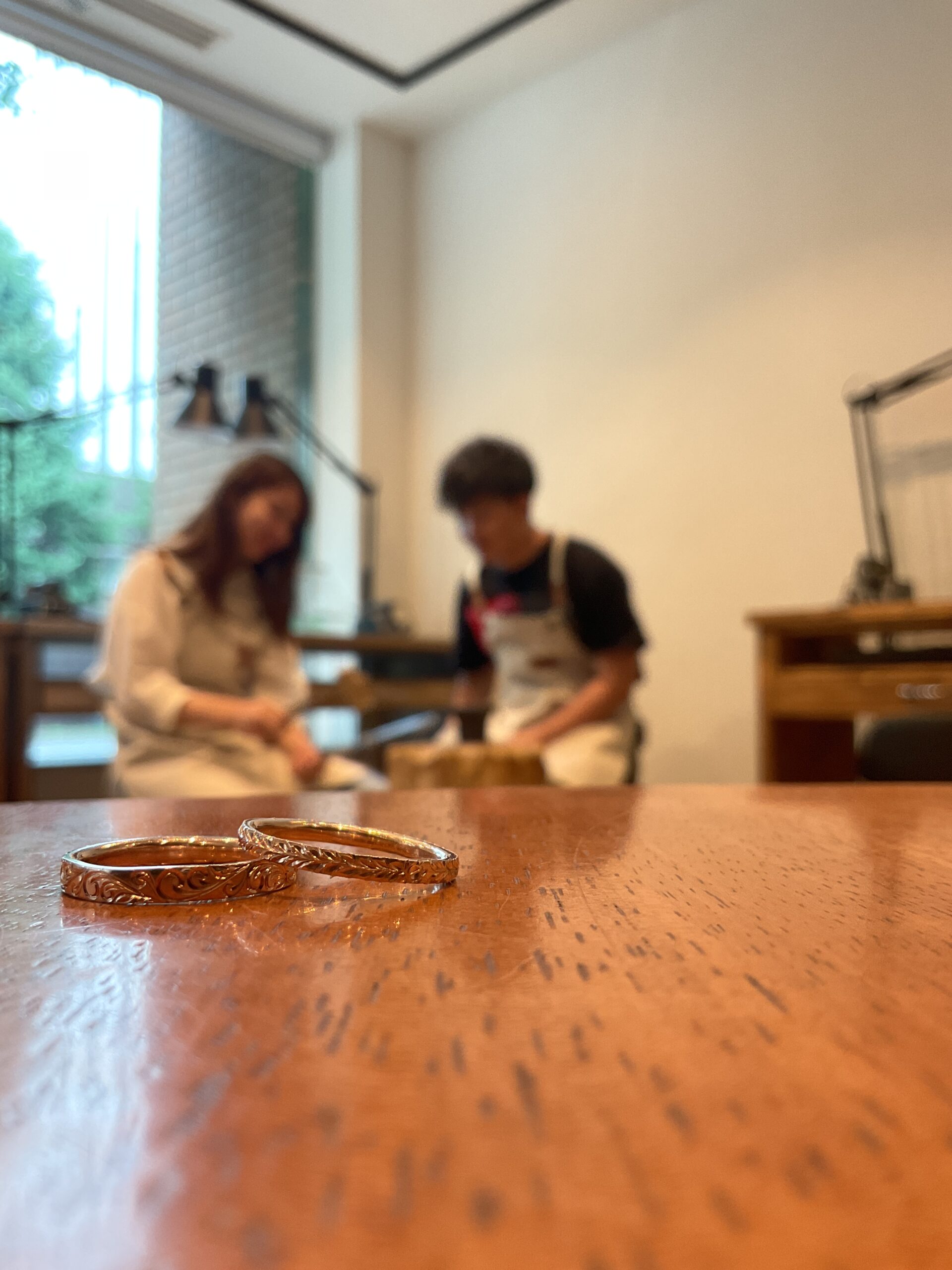 内側にもお二人のお名前の刻印と、お互いのお誕生石を交換して入れあった、素敵なペアリングになりましたね。