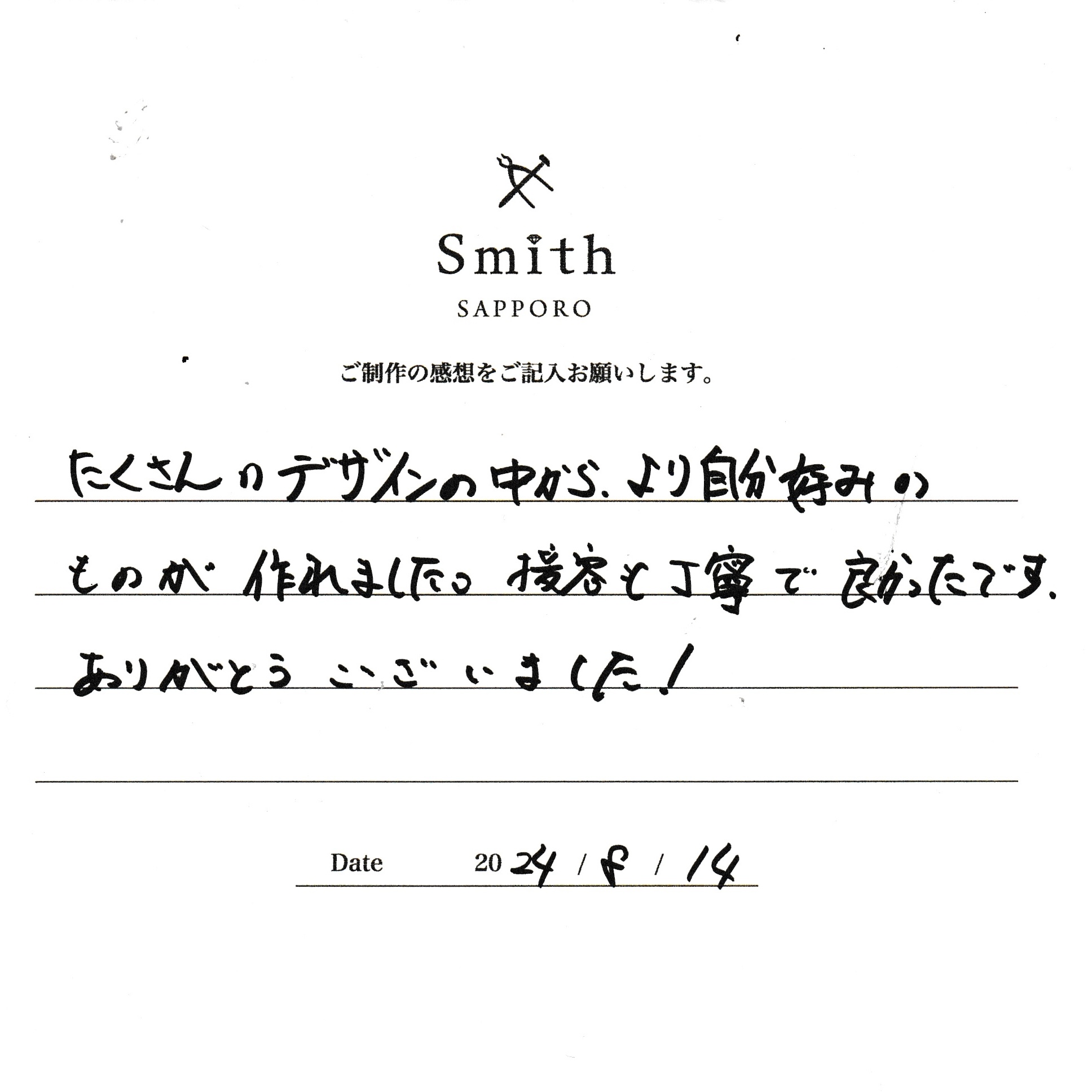 この度は、工房Smith京王プラザホテル札幌店で手作りペアリングのご制作誠にありがとうございました。