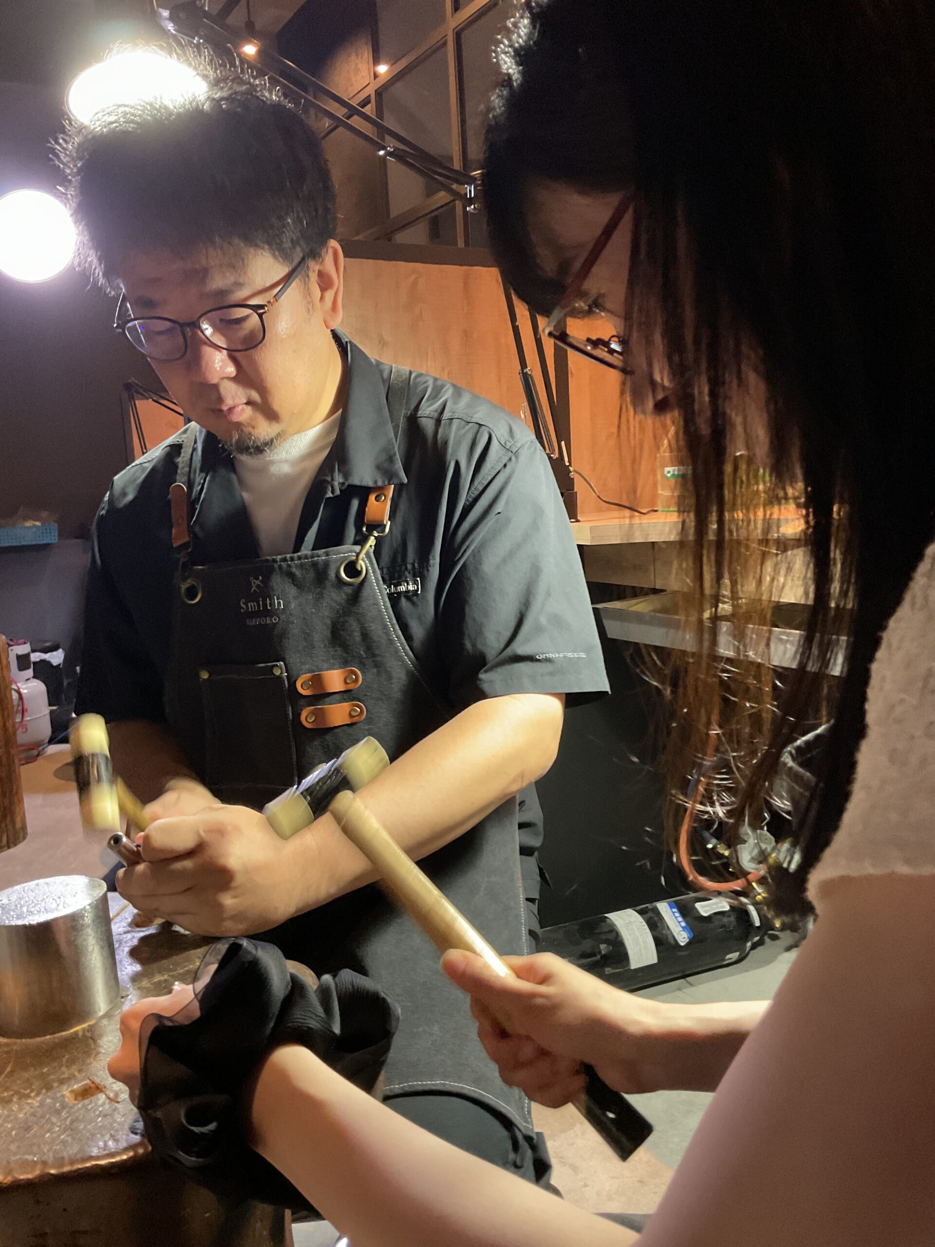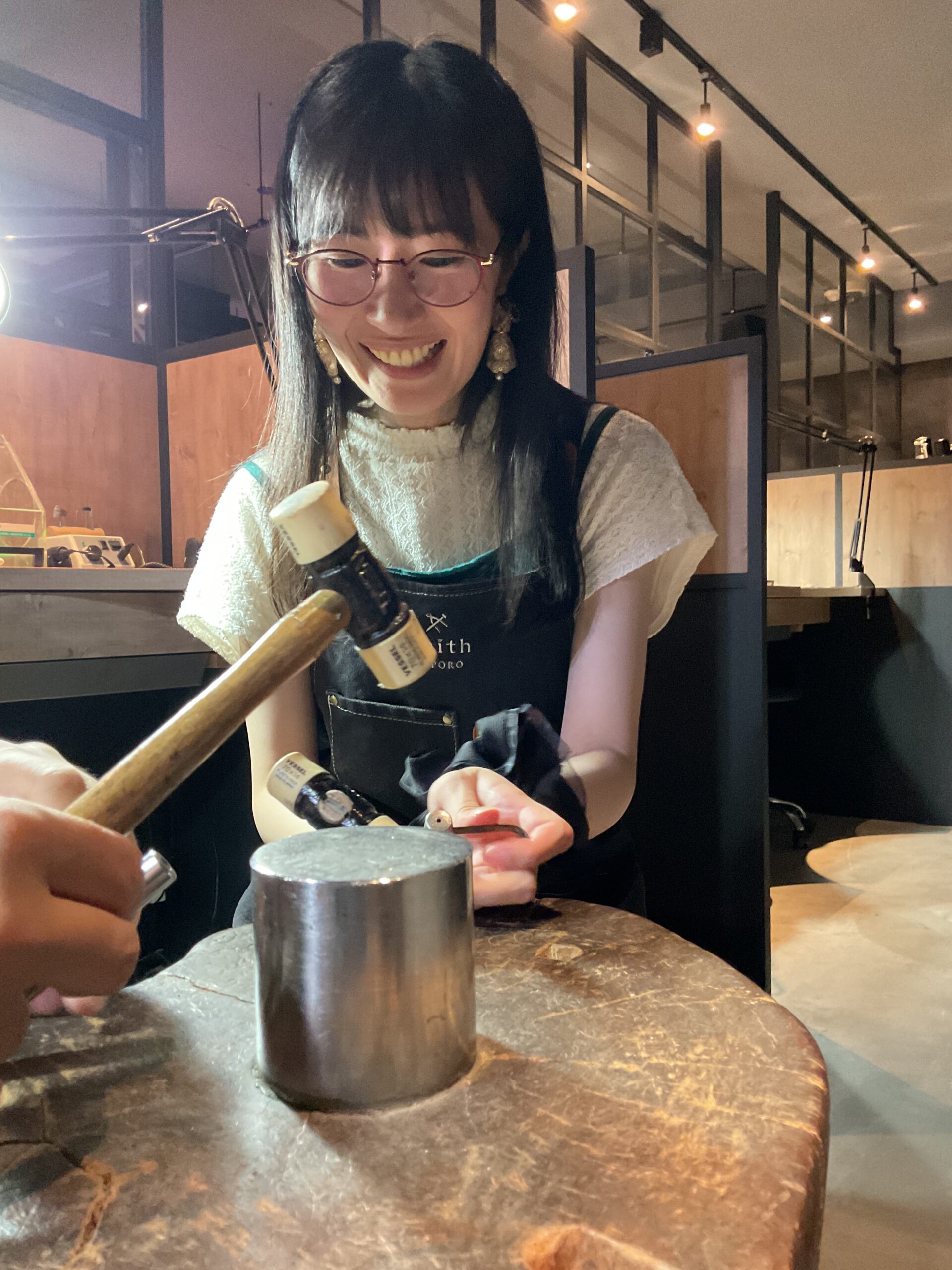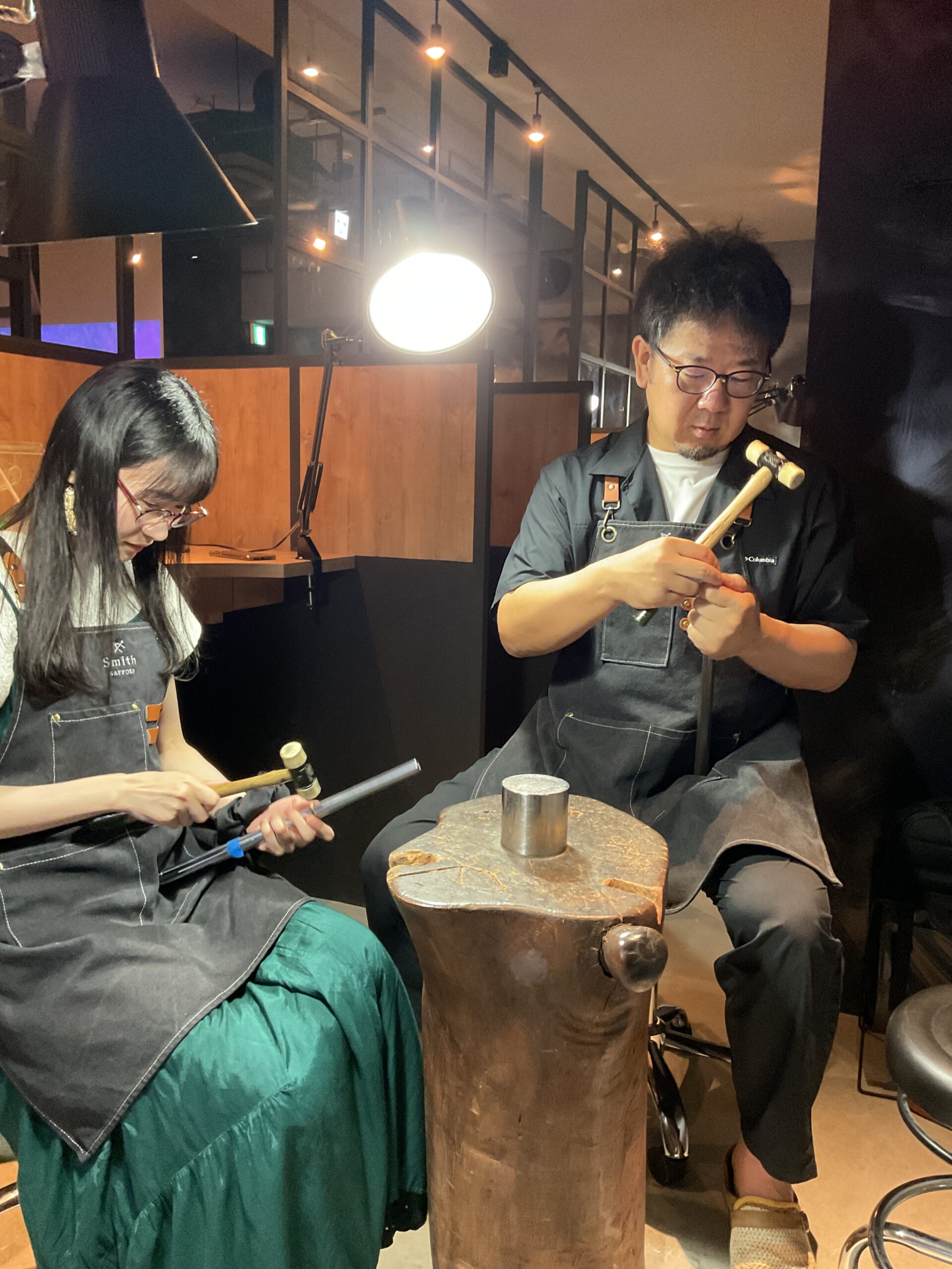 こちらがお話しする内容にも興味津々に聞いてくださり、制作中も職人さながらなご主人様と一生懸命に指輪を叩いている奥様の姿が印象的でした。