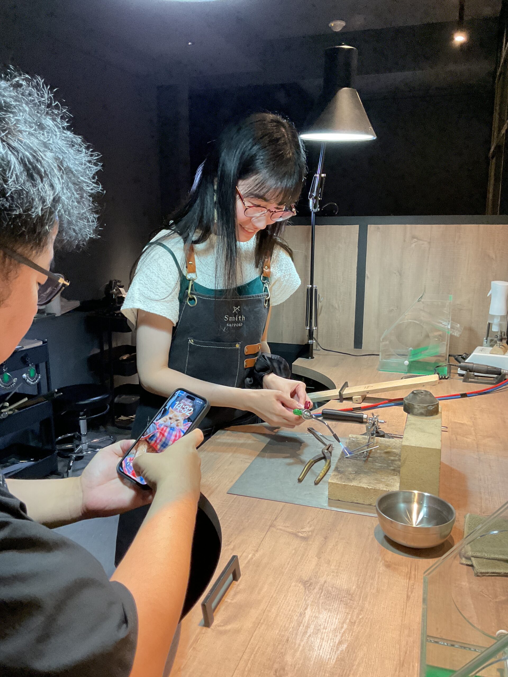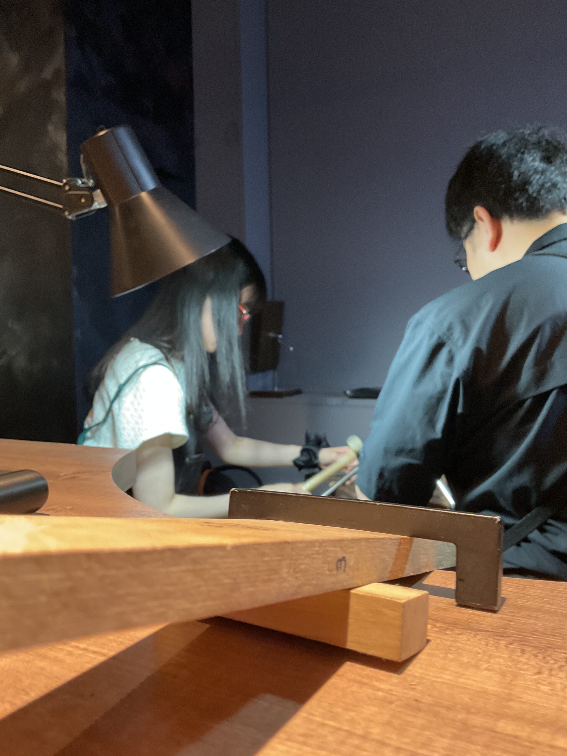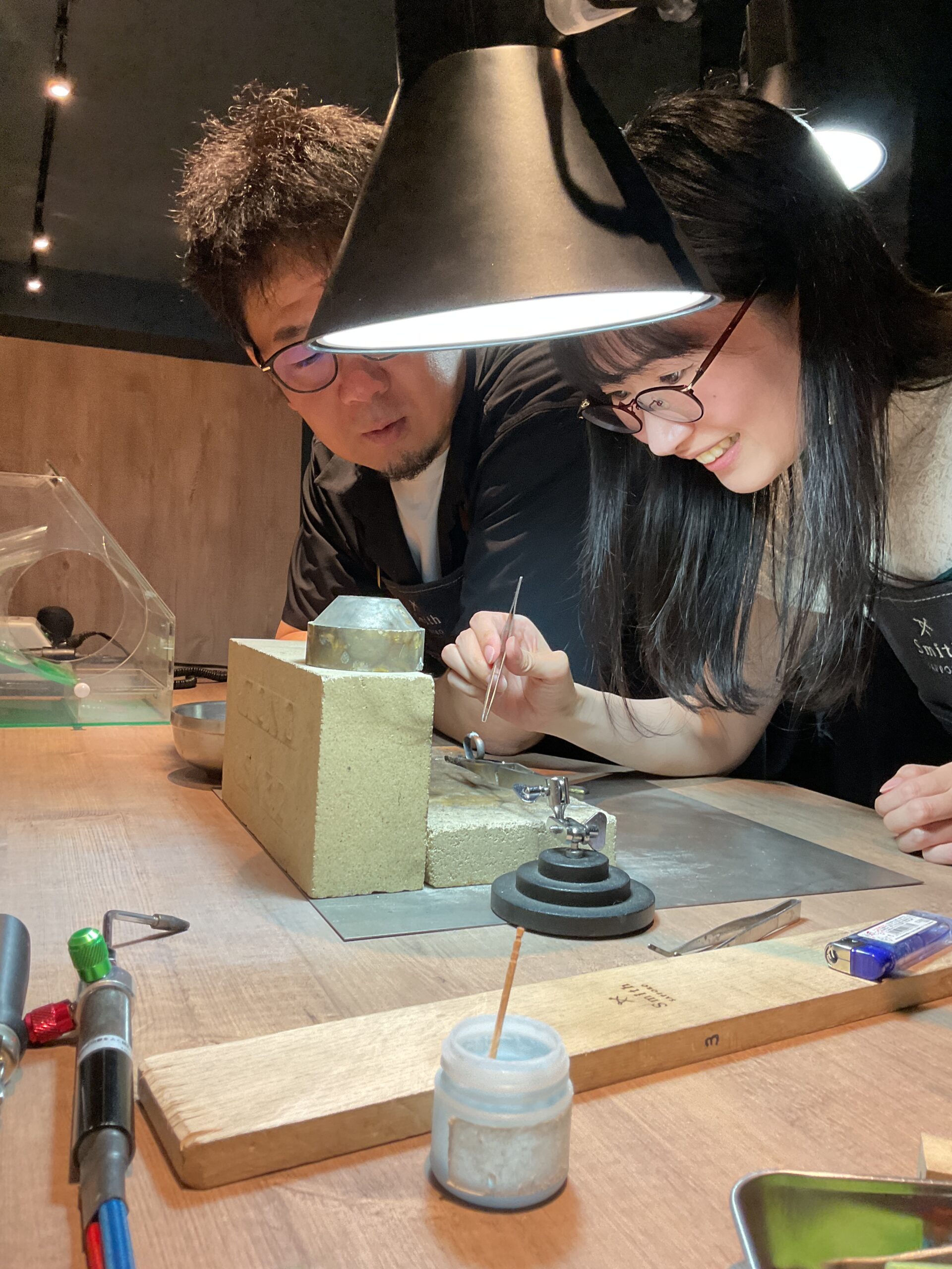 こちらがお話しする内容にも興味津々に聞いてくださり、制作中も職人さながらなご主人様と一生懸命に指輪を叩いている奥様の姿が印象的でした。