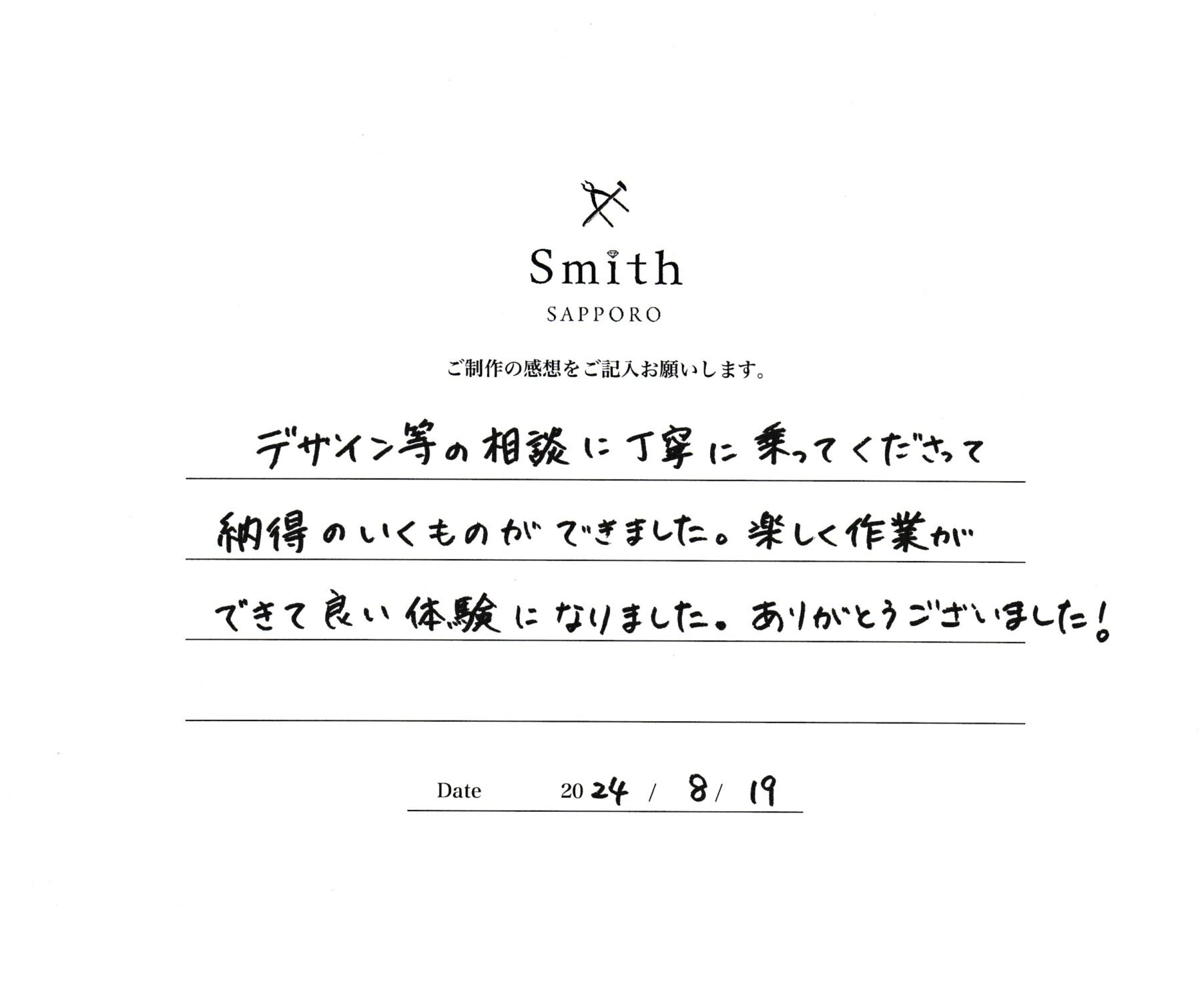 この度は工房Smith札幌本店へお越しくださいまして誠にありがとうございます。