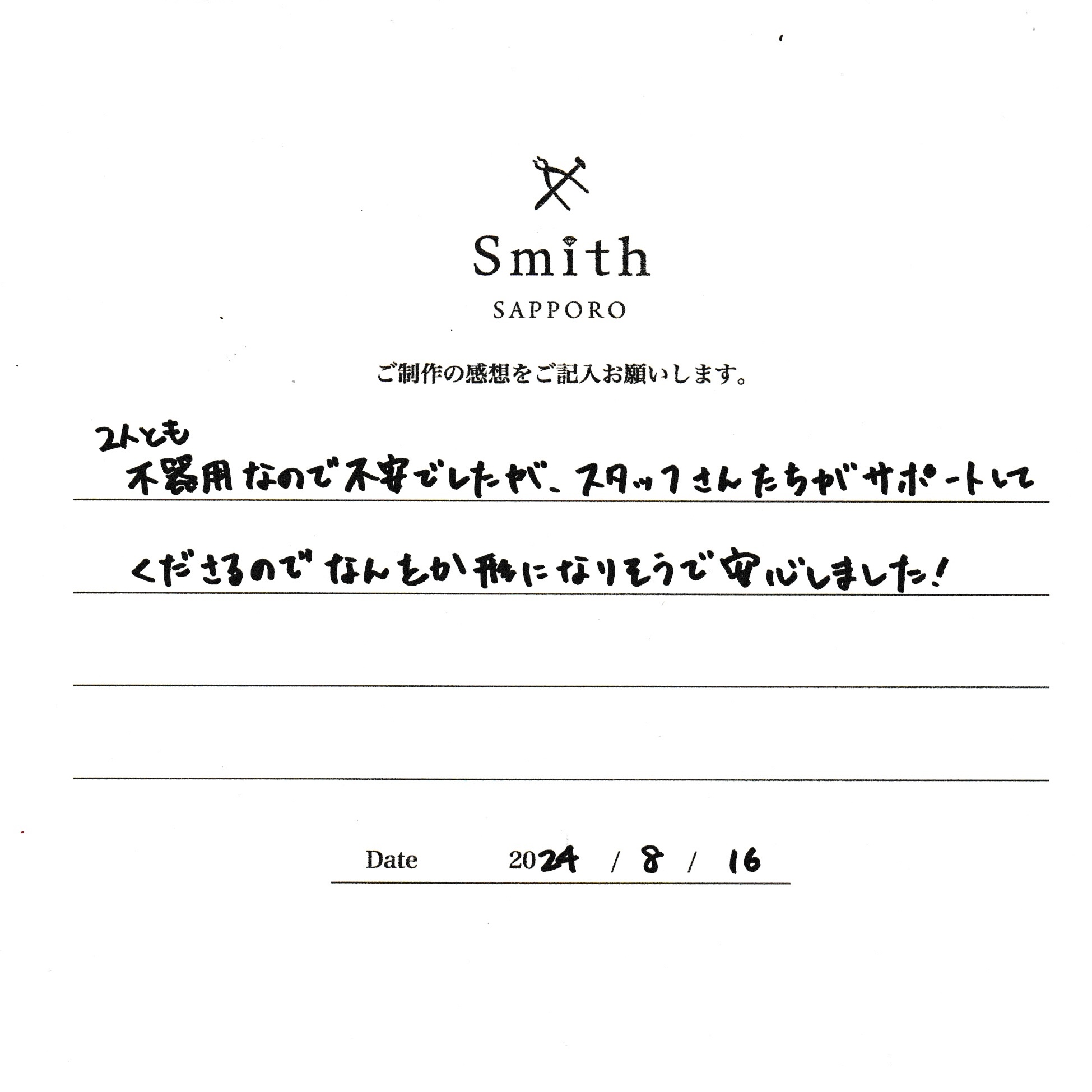 この度は、工房Smith京王プラザホテル札幌店で手作りペアリングのご制作誠にありがとうございました。
