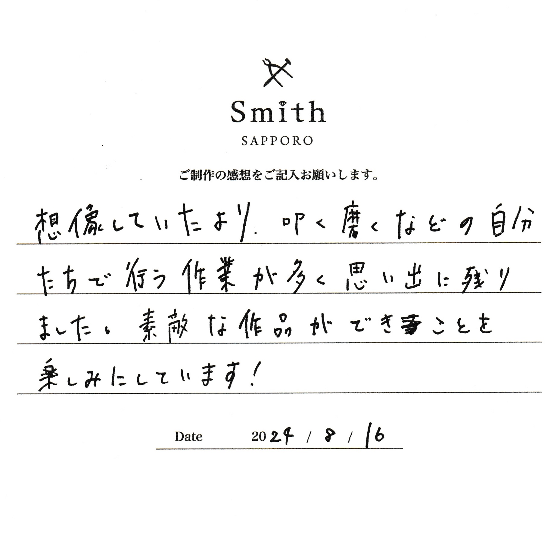 この度は、工房Smith京王プラザホテル札幌店で手作りペアリングのご制作誠にありがとうございました。