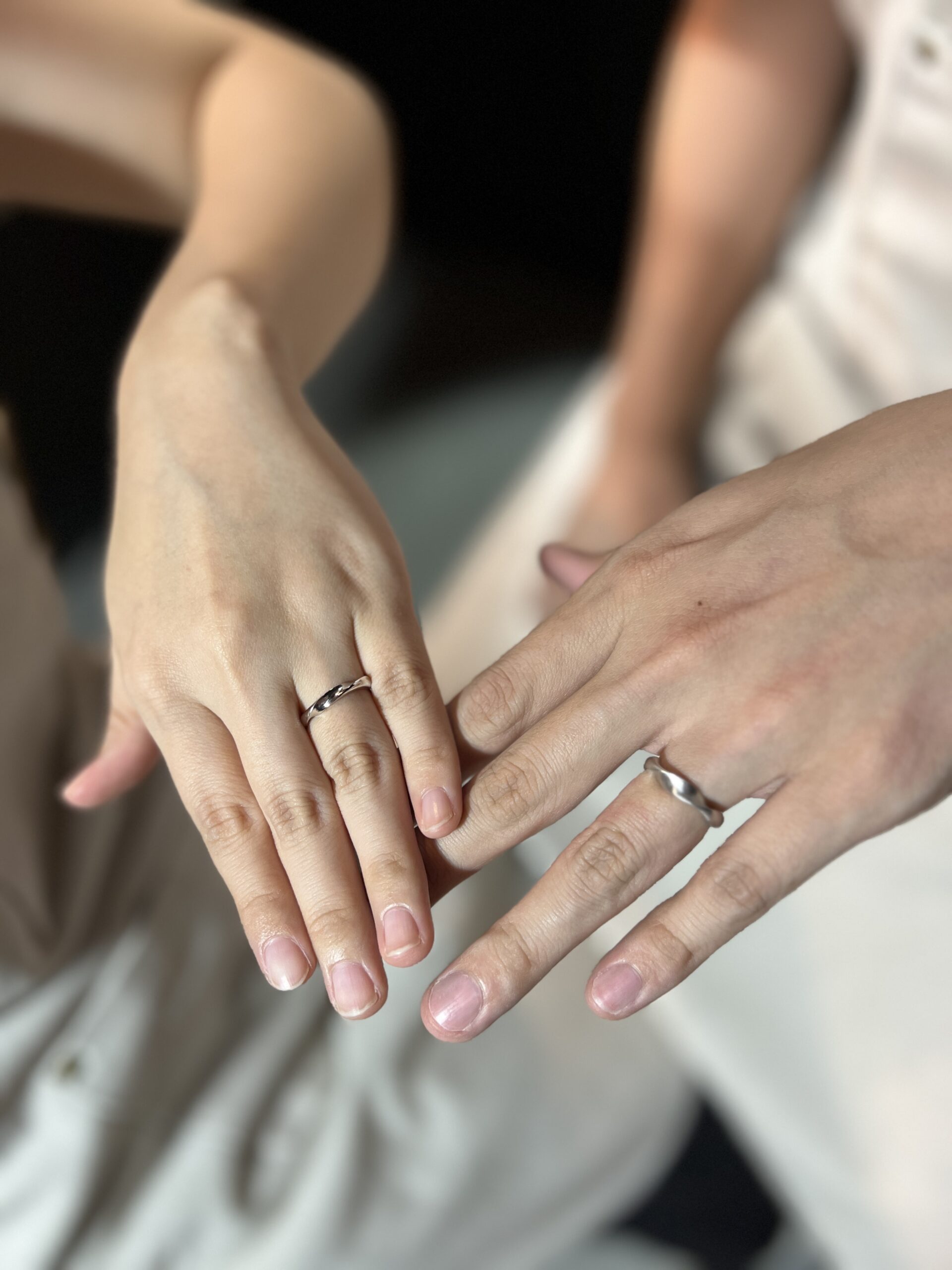 おそろいのメビウスデザインですが、ご主人は長い指にお似合いの4mm幅にシックなマット仕上げのデザインを、