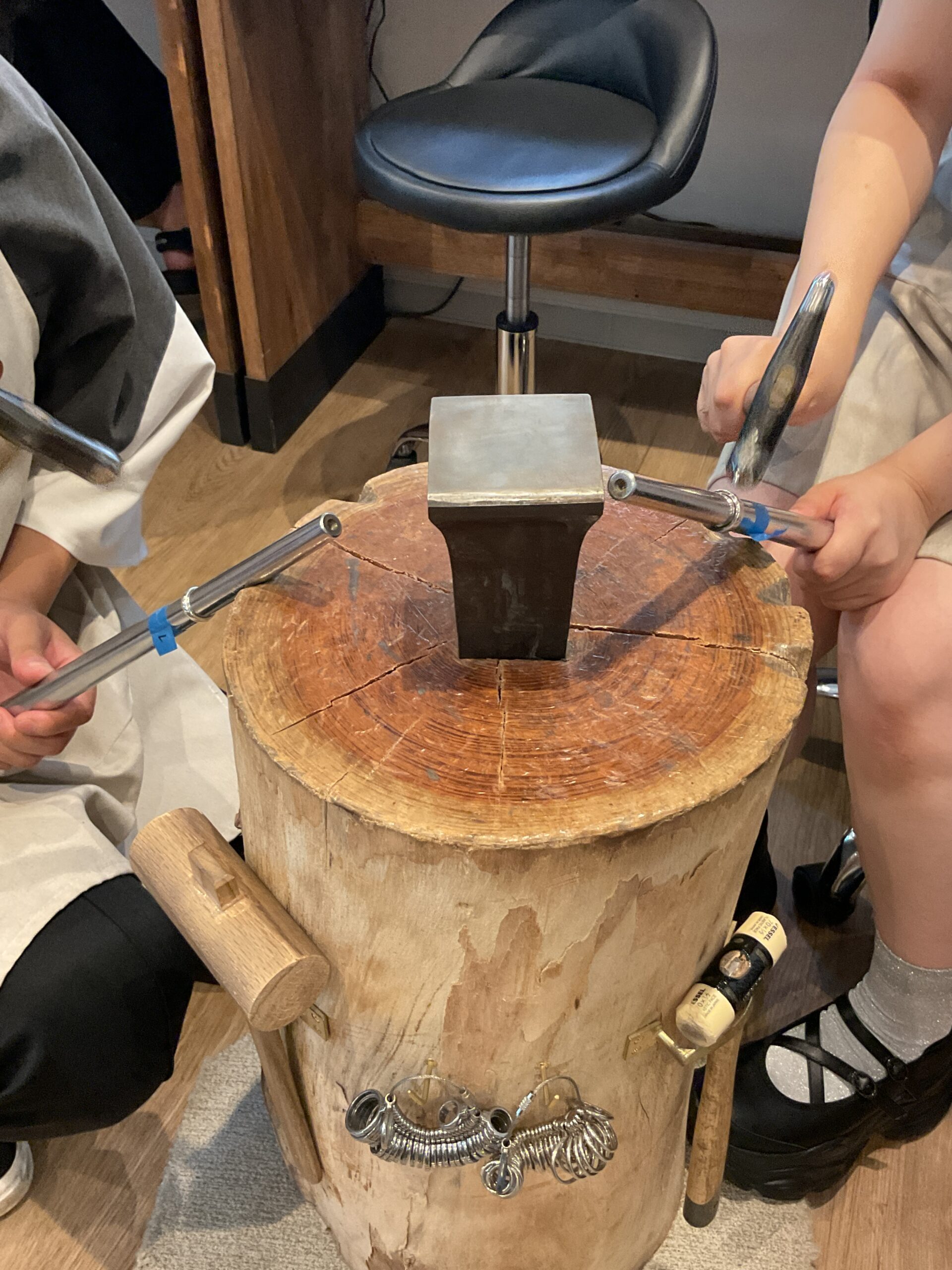 お二人が一生懸命制作したリングは、鏡面のテクスチャーにハンマー模様を施し、よりオリジナルリングに仕上げていただきました。