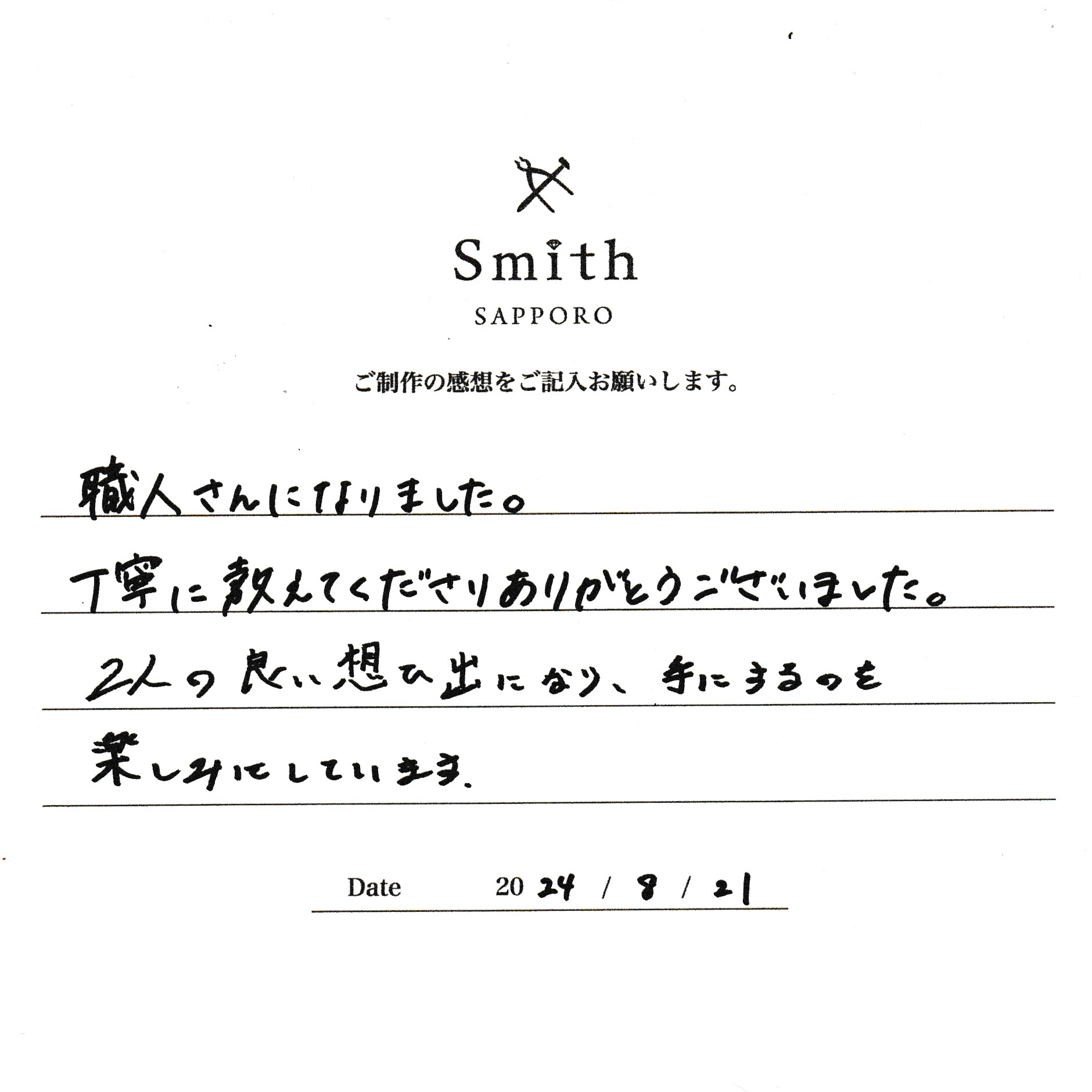 この度は、工房Smith京王プラザホテル札幌店で手作りペアリングのご制作誠にありがとうございました。