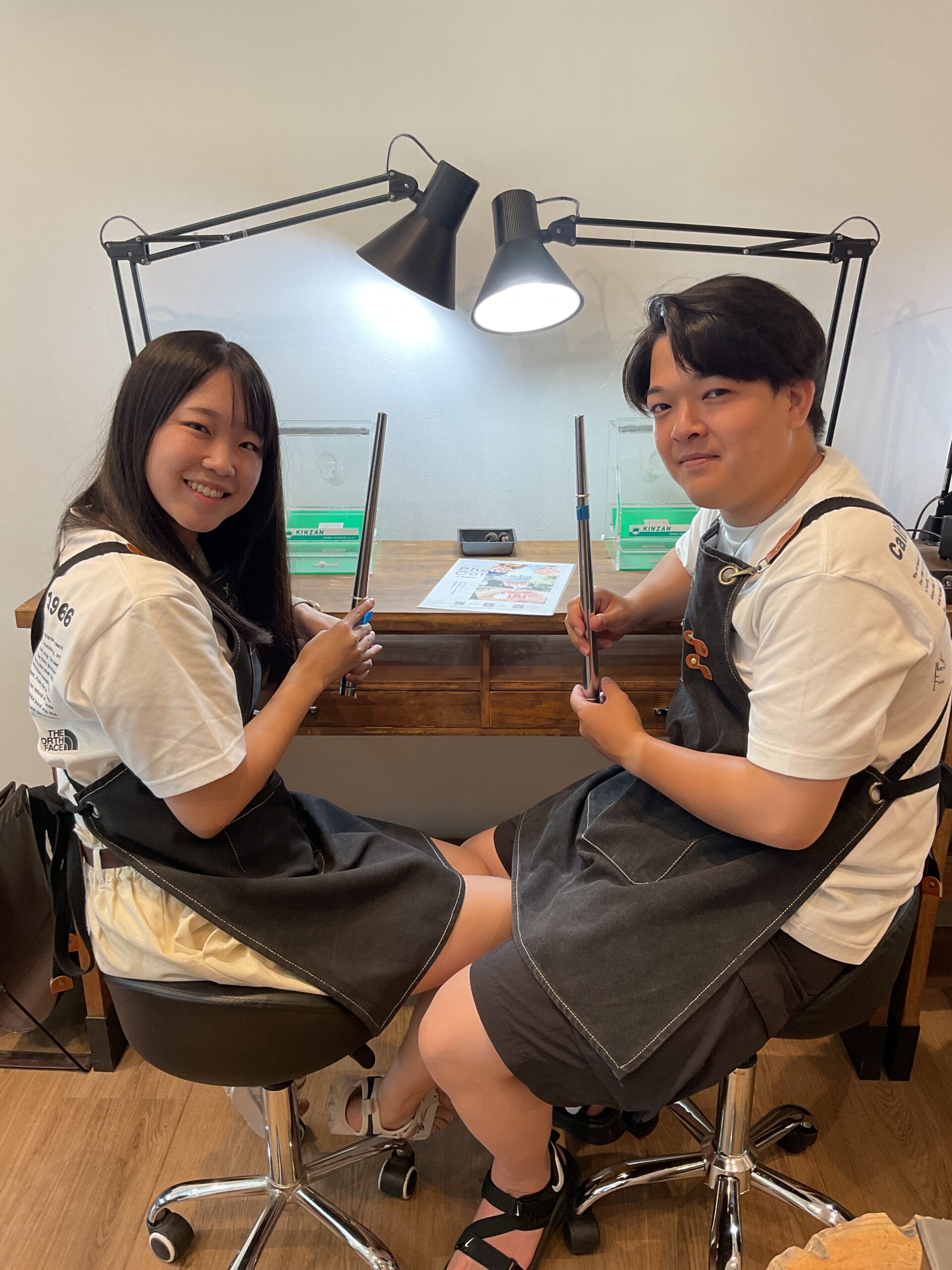 お二人が一生懸命制作したリングの内側にはお揃いで記念日の刻印が入りました。