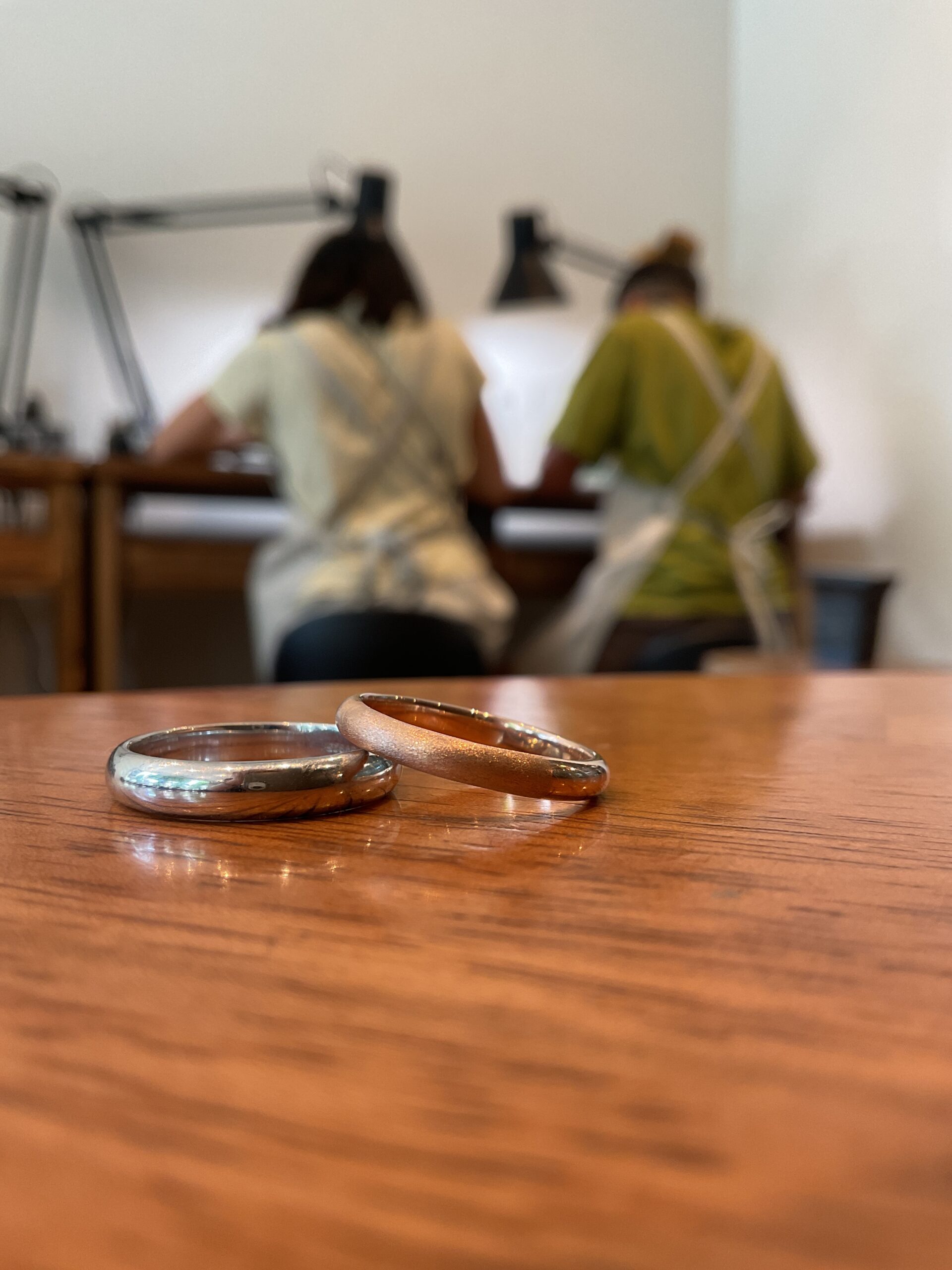 スターダストでキラキラに仕上げたリングに、ピンクゴールドのカラーコーティングを施した、可愛らしく素敵なデザインのペアリングになりましたね。