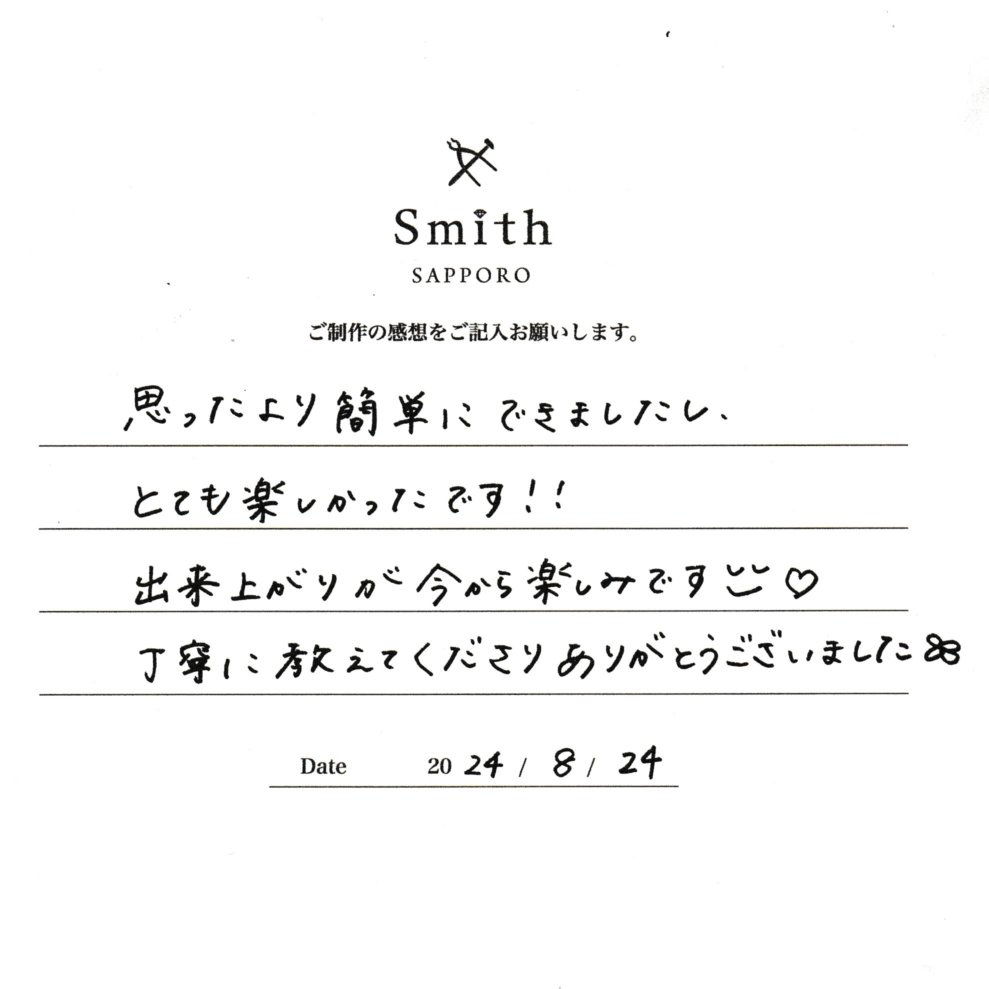 この度は、工房Smith京王プラザホテル札幌店で手作りペアリングのご制作誠にありがとうございました。