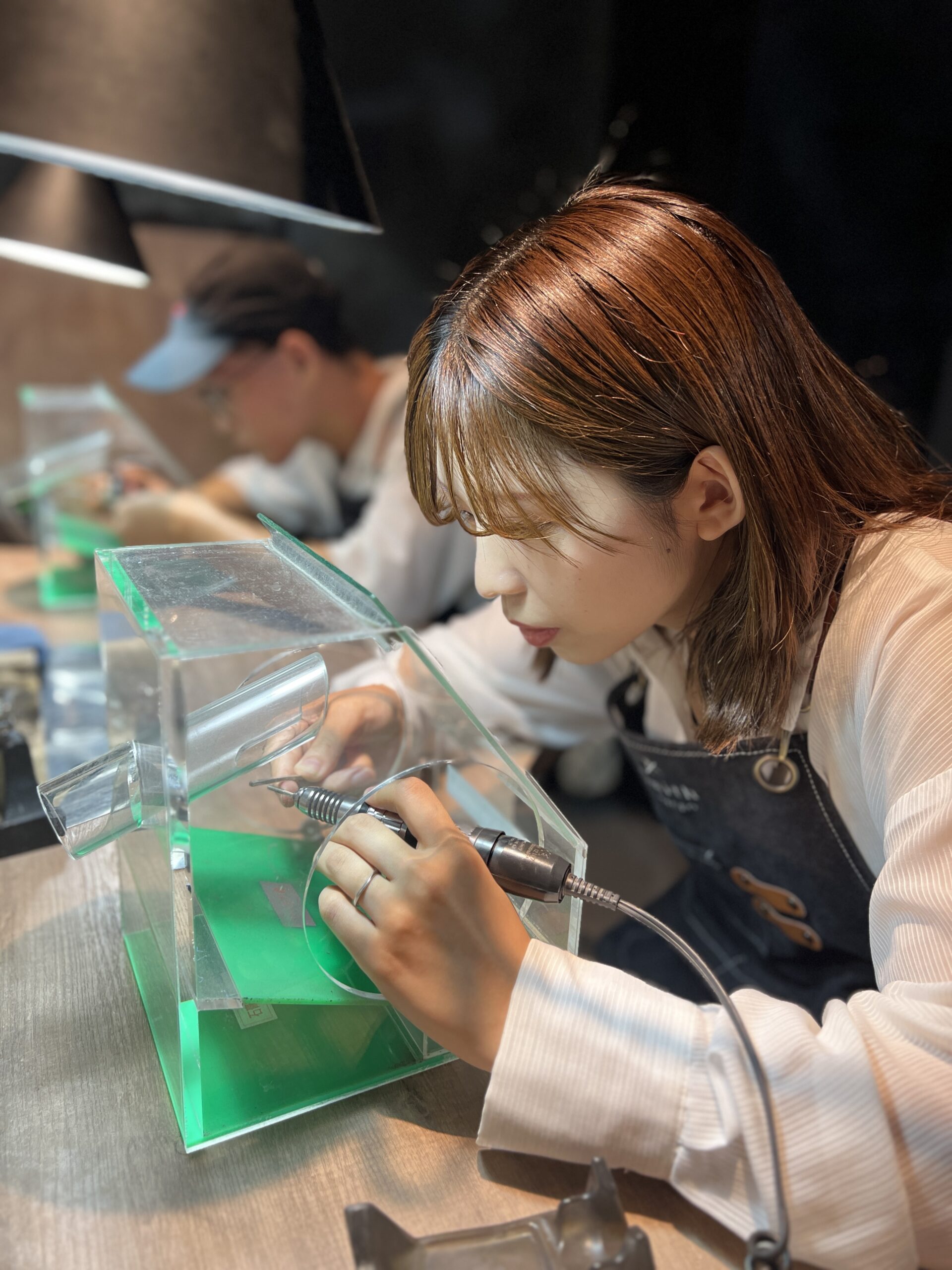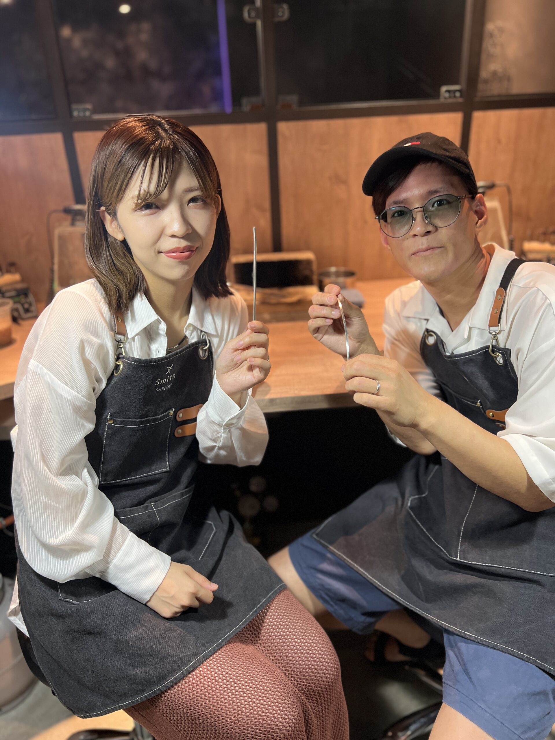仲良くメビウスのデザインを選んで頂き、お互いのバングルを交換して作って頂きました。