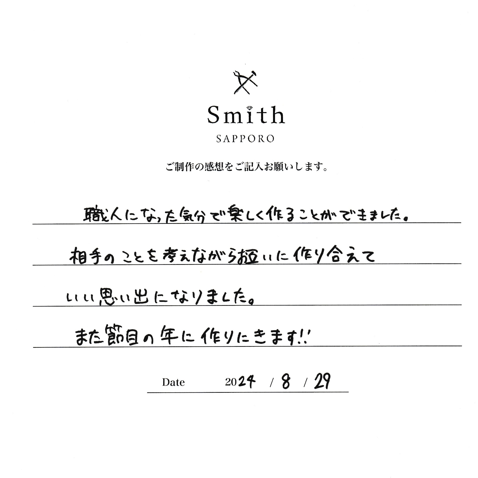 |H様【職人になった気分で楽しく作ることができました】
